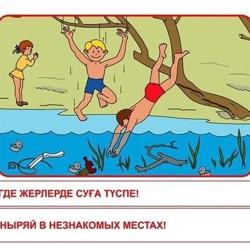 ⚠️ Жүзу білмесең, суға белден аса тереңдікке барма.