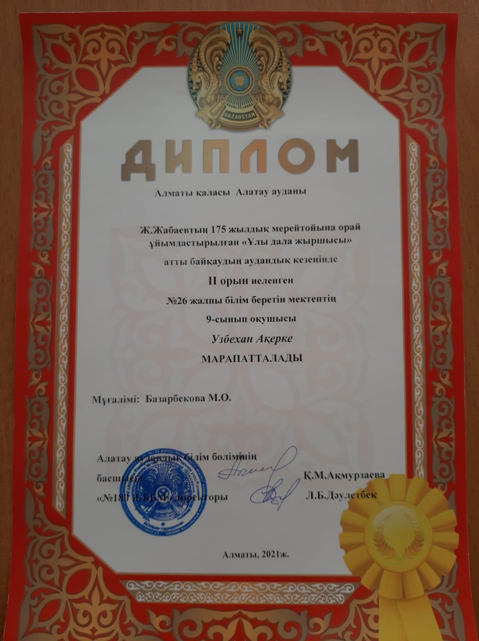 2) 9-сынып оқушысы Узбехан Ақерке ІІ орынды иеленді.