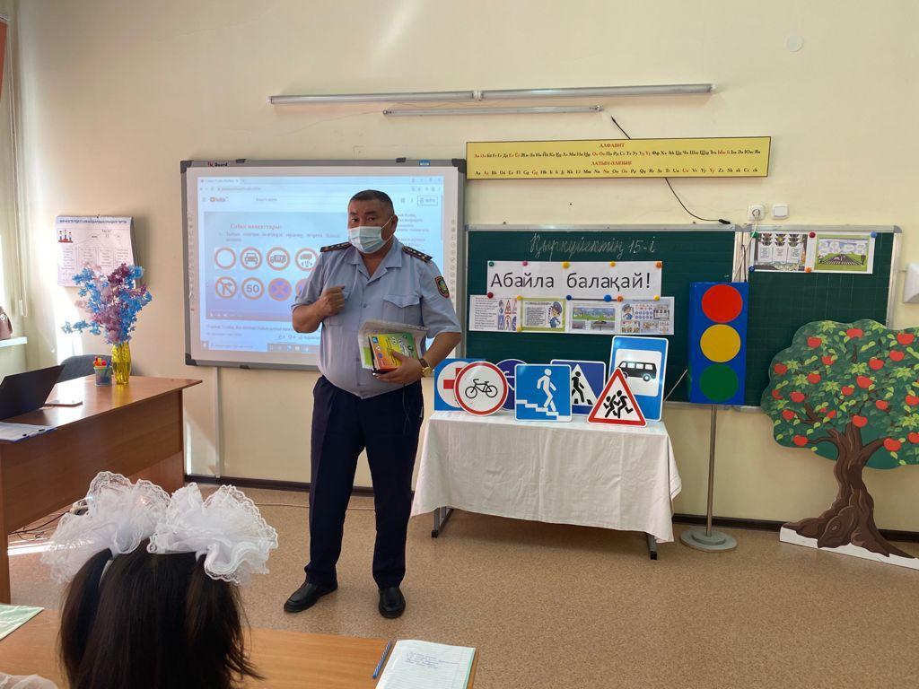 Алматы қаласы Алатау ауданы 26 жалпы білім беретін мектепте бастауыш сынып оқушылары арасында “Абайла, балақай!” атты жолда жүру ережесі айлығы бойынша ашық сынып сағаттары өткізілді. Сынып сағатына Алатау аудандық полиция капитаны мемлекеттік авто көлік инспекторы Табиев Қуаныш Комунарұлы қатысты. Мектеп әкімшілігімен бірлесіп жол қауіпсіздік ережелері және жалпы оқушылардың өмір қауіпсіздік ережелері бойынша профилактикалық әңгеме жүргізді. Қатысқан оқушылар саны: 1681