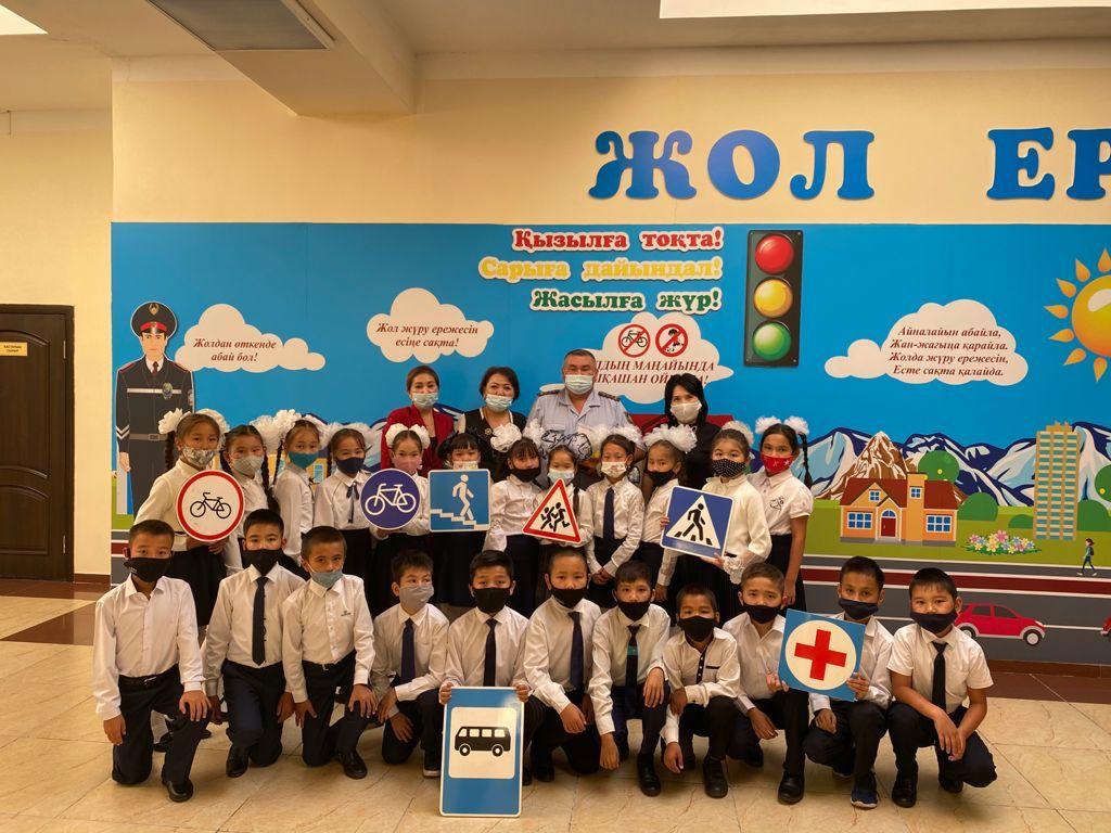 Мақсаты: Оқушыларды жолда жүру ережесімен таныстыру, көшеде дұрыс жүріп жол ережесін сақтауға тәрбиелеу.