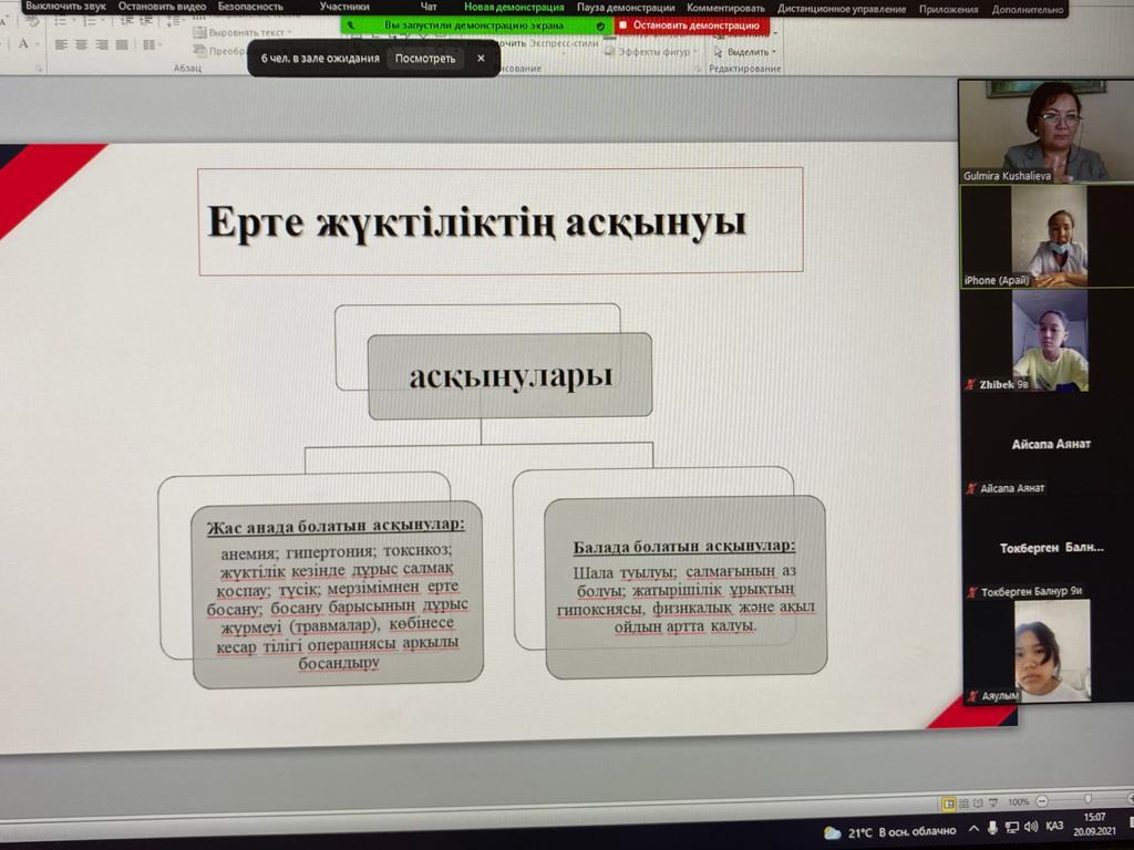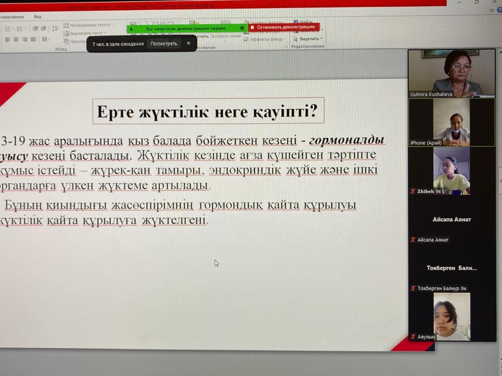 Алматы қаласы Алатау ауданы №26 жалпы білім беретін мектепте 22.09.2021 жылы сағат 15.00-де 9-сынып оқушыларының қыздары арасында “Ерте жүктіліктің алдын алу” тақырыбында ✓22 қалалық емхананың гинекологімен бірлескен кездесу өткізілді. Кездесуге Абдыллаева Арай Бактыбаевна қатысты. Қыздарға ерте жүктіліктің алдын алу жолдары бойынша түсіндірме жұмыстарын жүргізді. Қатысқан қыздар саны-100