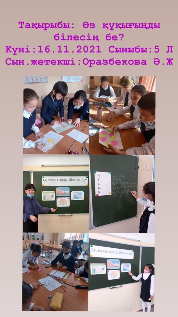 26 жалпы білім беретін мектепте “Бала құқығы- адам құқығы” республикалық айлық барысында “Өз құқығыңды білесің бе?” тақырыбында 5,11- сыныптар арасында сынып сағаттары өткізілді.