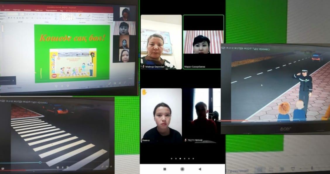 Алматы қаласы Алатау ауданы №26 жалпы білім беретін мектептің 5-сынып білім алушылары арасында «Көшеде сақ бол!» тақырыбында мектеп тәлімгері "Zoom" платформасымен түсіндірме жұмыстарын жүргізді.