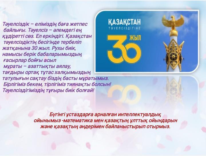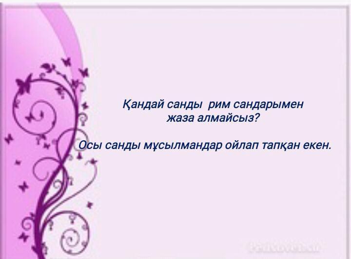 - “Әлем әміршісі- сандар” (викториналық сұрақтар)