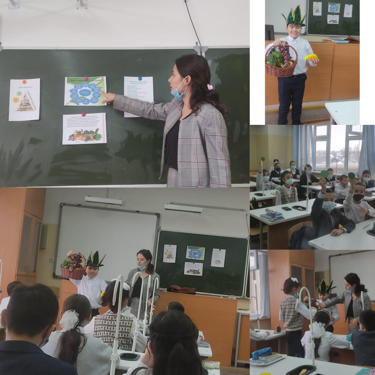Мақсаты: білім алушыларды салауатты өмір салтына қалыптастыру; дұрыс тамақтанудың адам ағзасында алатын рөлі жайлы түсіндіру.