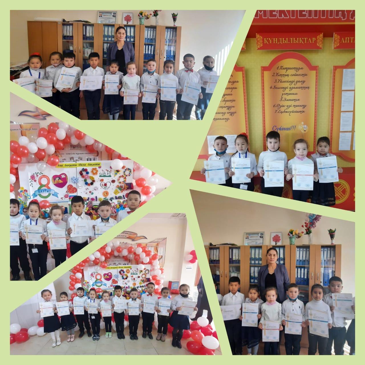 Алатау аудандық Білім бөлімінің ұйымдастыруымен "Оқуға құштар мектеп" жобасы аясында 1-сыныптар арасында "Кітап оқиық" тақырыбында өткен байқаудан мектебіміздің
