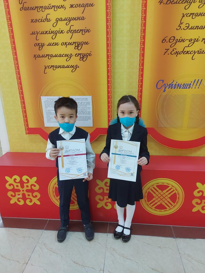 №26 жалпы білім беретін мектептің 1"Д" сынып оқушылары Әбен Алижан мен Бақытжан Аймереке Республикалық "Самұрық" математикалық зияткерлік олимпиадасына қатысып жүлделі орындарды иеленді.