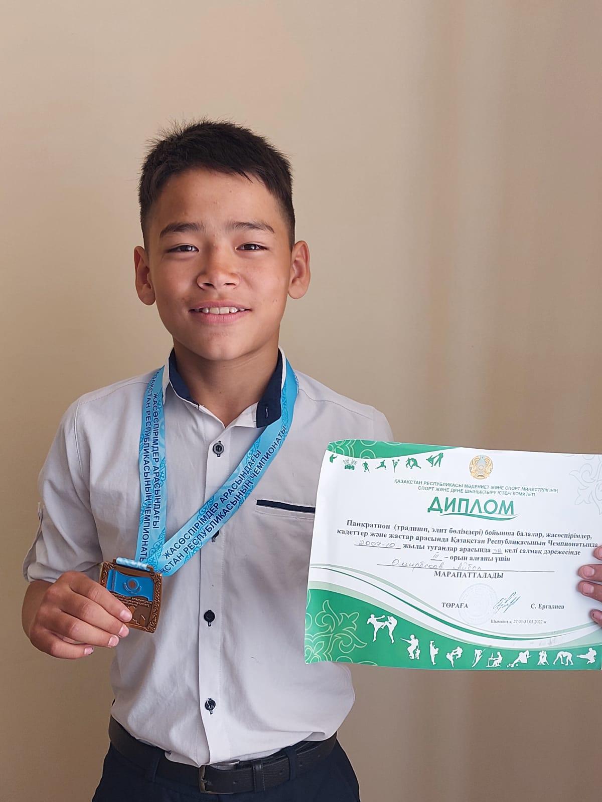 Алматы қаласы Алатау ауданы 26 жалпы білім беретін мектеп .Пакратион(традиши, элит бөлімдері) бойынша балалар, жасөспірімдер, кадеттер және жастар арасында Қазақстан Республикасының Чемпионатында 2009 -10 жылы туғандар арасында 38 келі салмақ дәрежесінде lll орын алғаны үшін мектебіміздің 7"Е" сынып білім алушысы Омирбеков Айбол медаль ,дипломмен марапатталды.