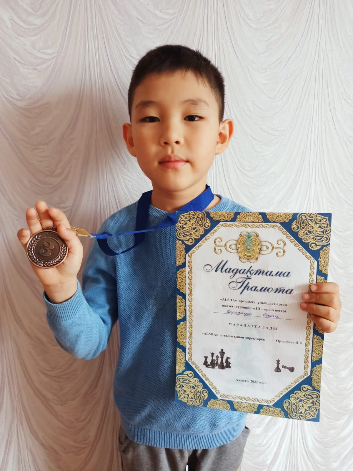 ALSHA орталығы ұйымдастырған шахматтан оқушылар арасындағы турнирге қатысып III орын иеленді. Сынып жетекшісі: Булекшурина М.Ж