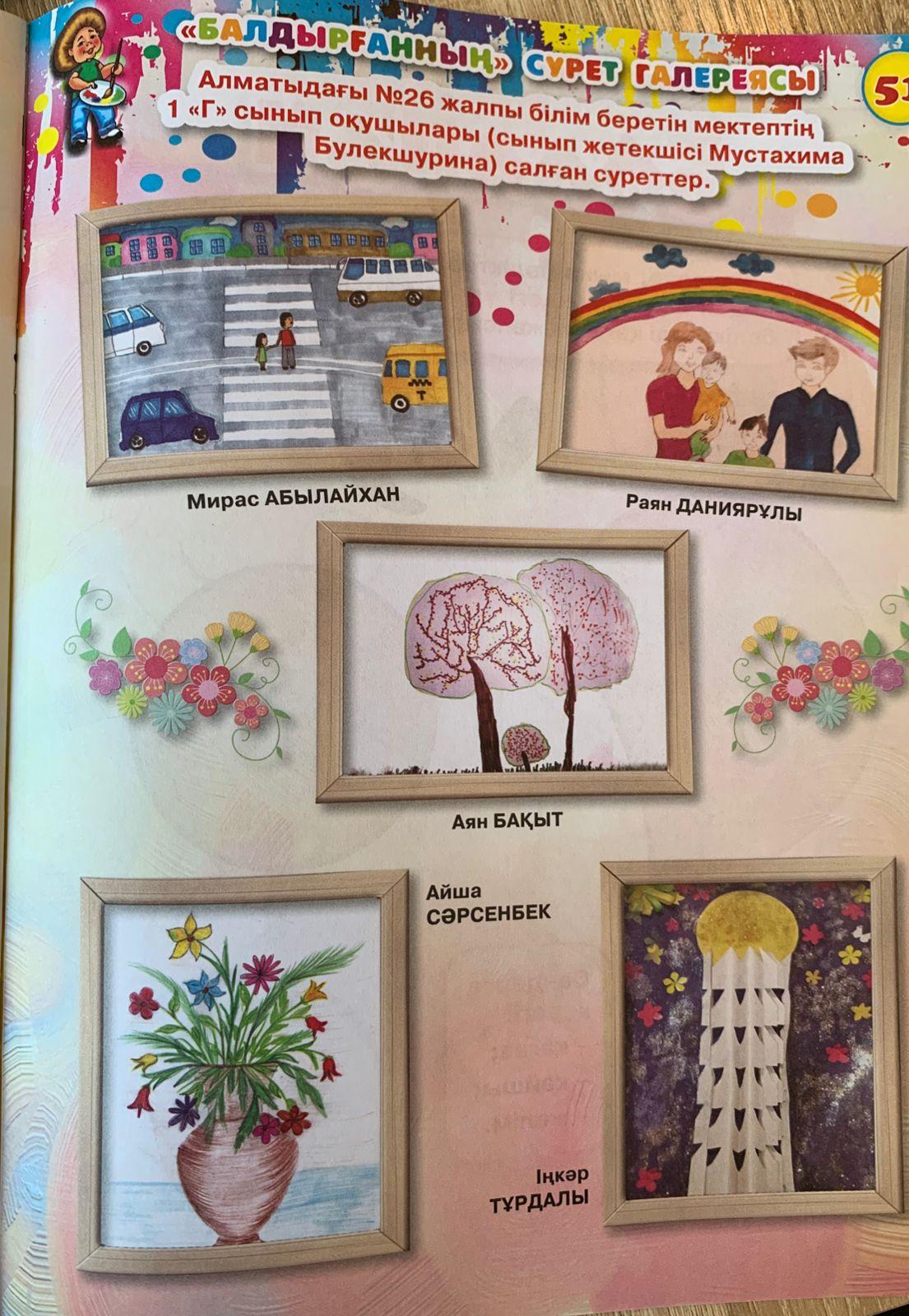 Алматы қаласы Алатау ауданы N 26 жалпы білім беретін мектепте “Балдырған журналының сурет галереясына 1”Г”сынып оқушыларының салған сурет топтамалары жарияланды.