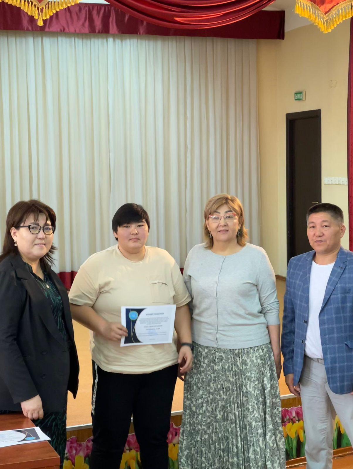 Алматы қаласының білім беру жүйесіне және өскелең ұрпаққа өнегелі тәрбие беру ісіне сіңірген еңбегі мен тәуелсіз еліміздің рухани-әлеуметтік дамуына үлес қоса отырып,шәкірттерін ҰЛТТЫҚ МЕКТЕП ЛИГАСЫНА жоғары деңгейде дайындағаны үшін ҚАСЕН ТҰЙҒЫН НУРҒАЗЫҚЫЗЫН