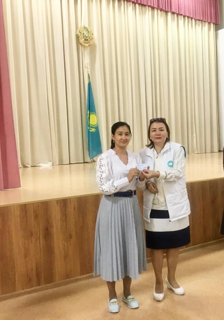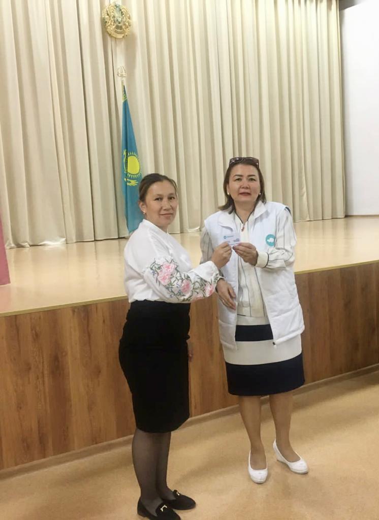 Алматы қаласы ҚАЛАЛЫҚ МАСЛИХАТЫНЫҢ ДЕПУТАТЫ Бекенова Гүлжан Мырзалықызы Шаңырақ-2 ықшамауданында орналасқан №26 жалпы білім беретін мектептегі "Бірлік" бастауыш партия ұйымының мүшелеріне "АМАНАТ" партиясының партиялық билеттерін табыстады.