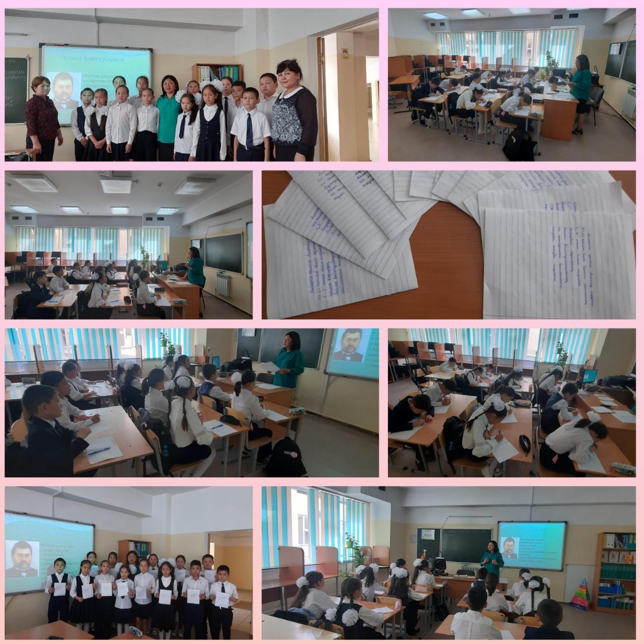 5-сыныптар арасында Ахмет Байтұрсынұлының 150 жыл толуына байланысты "Ахмет Байтұрсынұлы-дәуірдің дара тұлғасы" тақырыбында жазған жазба (диктант) жұмыстары.