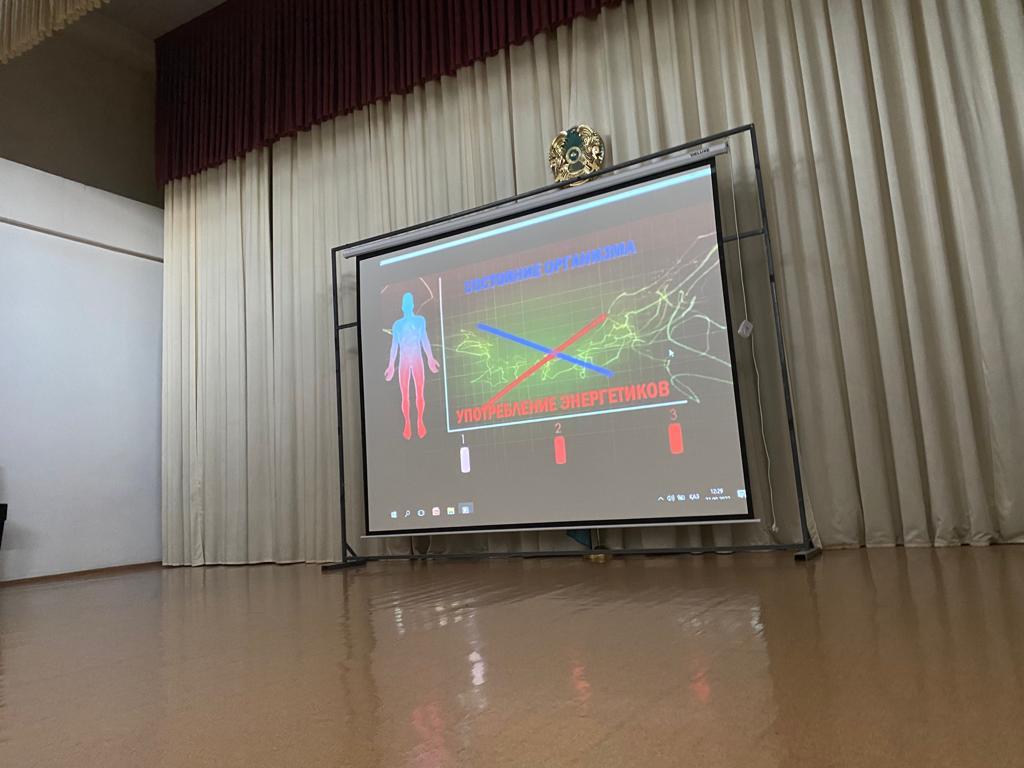 №26 жалпы білім беретін мектепте 27.09.2022 жылы директордың тәрбие жұмысы жөніндегі орынбасары Г. Кушалиеваның ұйымдастыруымен Алматы қалалық психикалық сауықтыру орталығының телімдік психиатр -нарколог С.К. Кенесбековамен 8,9 сынып білім алушылары арасында “Нашақорлыққа жол жоқ” тақырыбында дәріс өткізілді. Мақсаты: Оқушылар арасында құқық бұзушылықты болдырмау және электрондық темекілерден аулақ болуға үйрету.