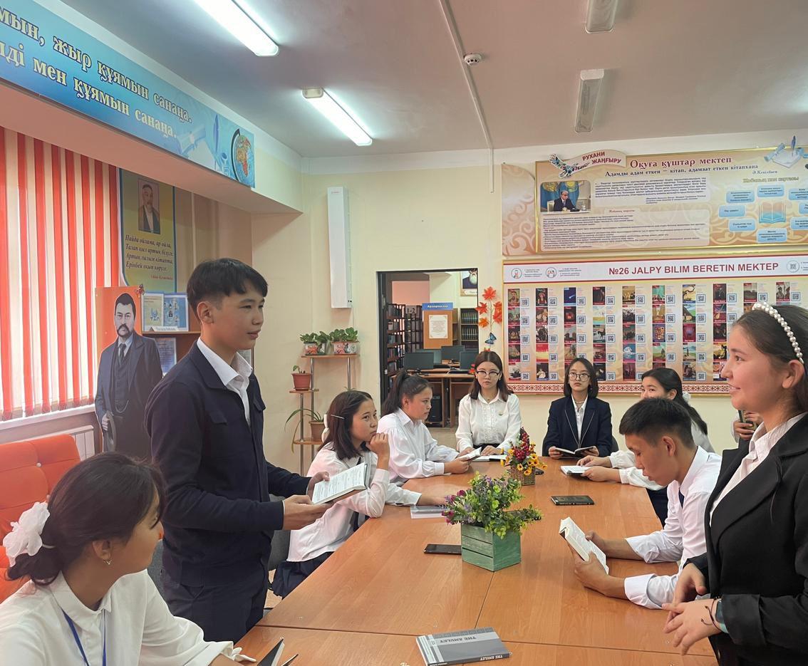 Алматы қаласы Алатау ауданы №26 ЖББ мектептің кітапхана меңгерушісі: Мергенбаева А.К.Халық жазушысы,Мемлекет және қоғам қайраткері,халықаралық "Алаш" әдеби сыйлығының,ҚР-ның Мемлекеттік сыйлығының лауреаты,журналистика қолбасшысы Ш.Мұртазаның туғанына 90 жыл толуына орай мектеп кітапханасында 9,10,11 сыныптар арасында "Кемел ойлы,Зерделі жазушы"атты дөңгелек үстелі ұйымдастырылды. Аталмыш шараны 9"А"сынып оқушысы Яғнұс М ашып жүогізіп отырды.Дөңгелек үстелде 9"А"сынып оқушылары: Чоганбаева Б,Мухаммет Х жазушының өмірбаяны мен шығармаларына тоқталып өтті. 10"А"сынып оқушылары: Сүйіндік Н,Серікқызы Ж, Қуанышқызы Г, Бейсенбай Н жазушының шығармасының ішіндегі "Бір кем дүние" ойтолғауын талдау жасады. 11"Ә"сынып оқушылары: Садирбаева Ә,Ауелбеков Ж, Марқабат Е "Ай мен Айша" романын жан-жақты талдап,соғыс жылдарындағы аналардың ауыр тағдырын суреттеген шығарманы саралау мақсатында дөңгелек үстел болып өтті. Қорыта келгенде: Оқушылар жазушының шығармаларынан адам өміріндегі ең басты құндылықтардың шынайы бейнесінің мсаңыздылығын түсінді.