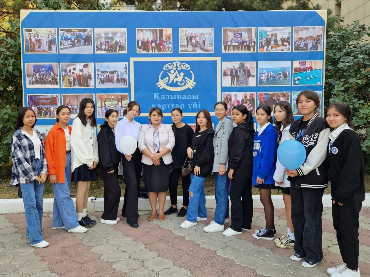 1 қазан Халықаралық қарттар күніне орай “Мектеп Парламенті», «Жас Ұлан» ұйымы «Қазыналы» қарттар үйіне барып, мерекелерімен құттықтап, ізгі тілектерін айтып, баталарын алып қайтты.