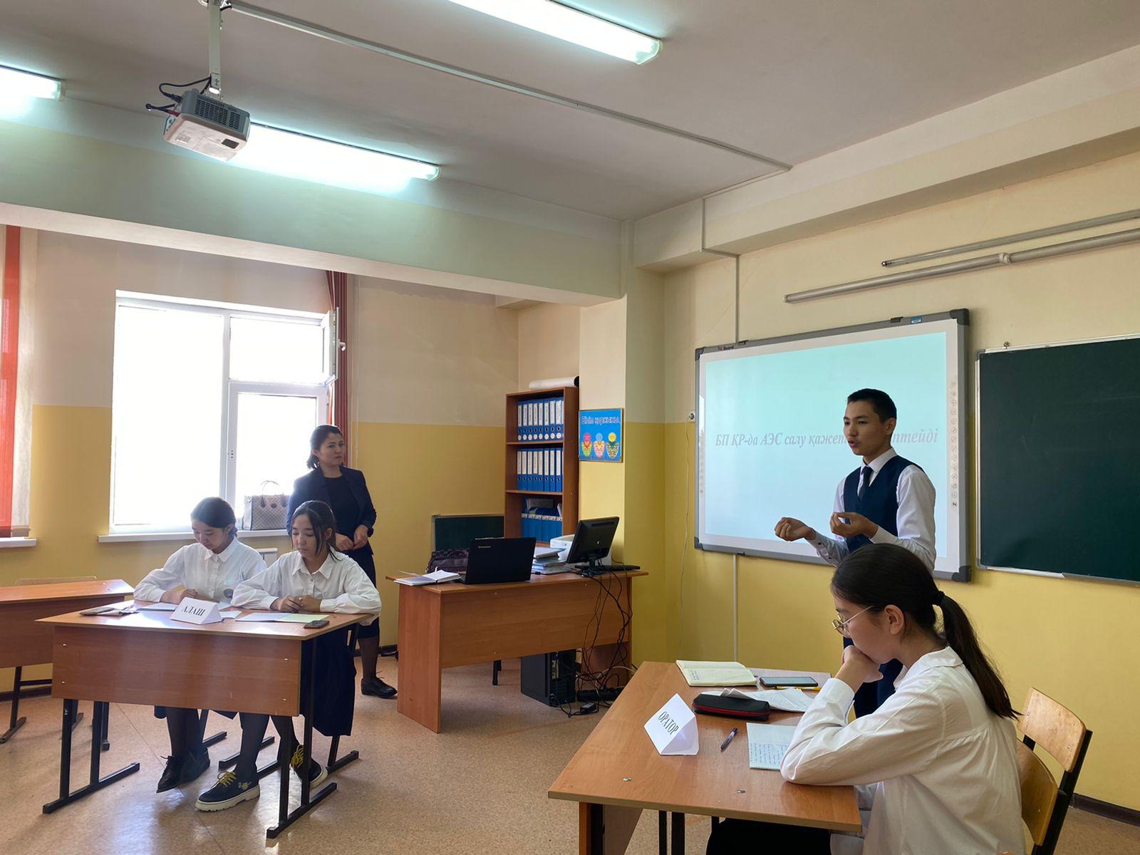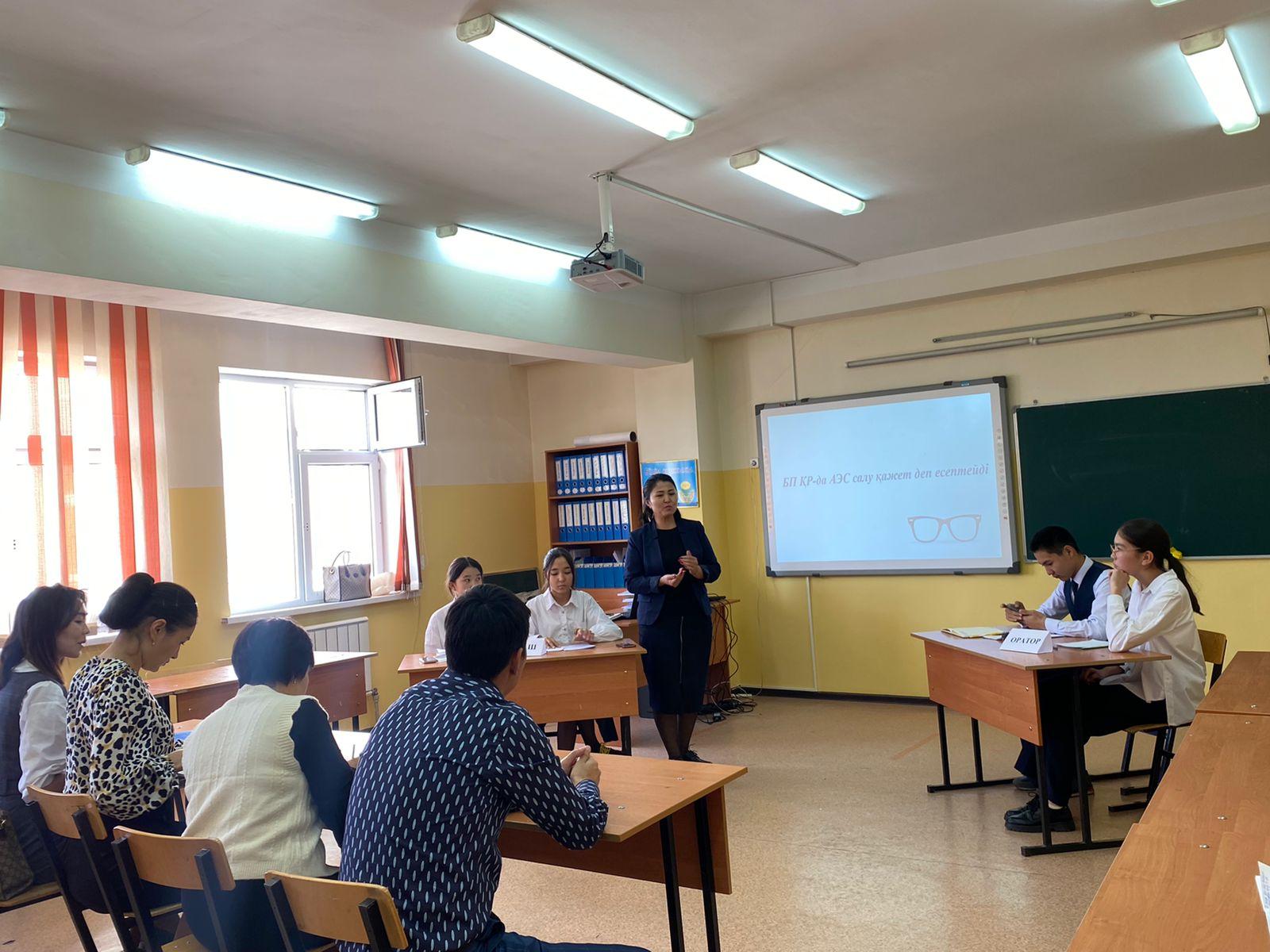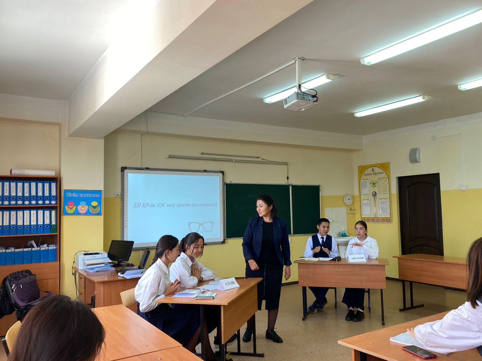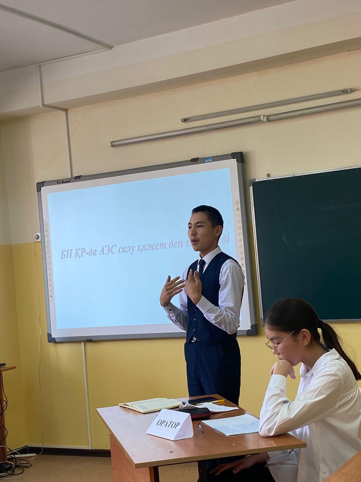 Алматы қаласы Алатау ауданы №26 жалпы білім беретін мектептің 9-сынып оқушыларының арасында "Алаш", "Оратор" және "Тастүйін" топтарының арасында "БП Қазақстанда АЭС салу керек деп есептейді" тақырыбында дебат сайысы болып өтті. Мақсаты: Соңғы уақыттарда қоғамда қызу талқыға салынып жүрген мәселелер жайында