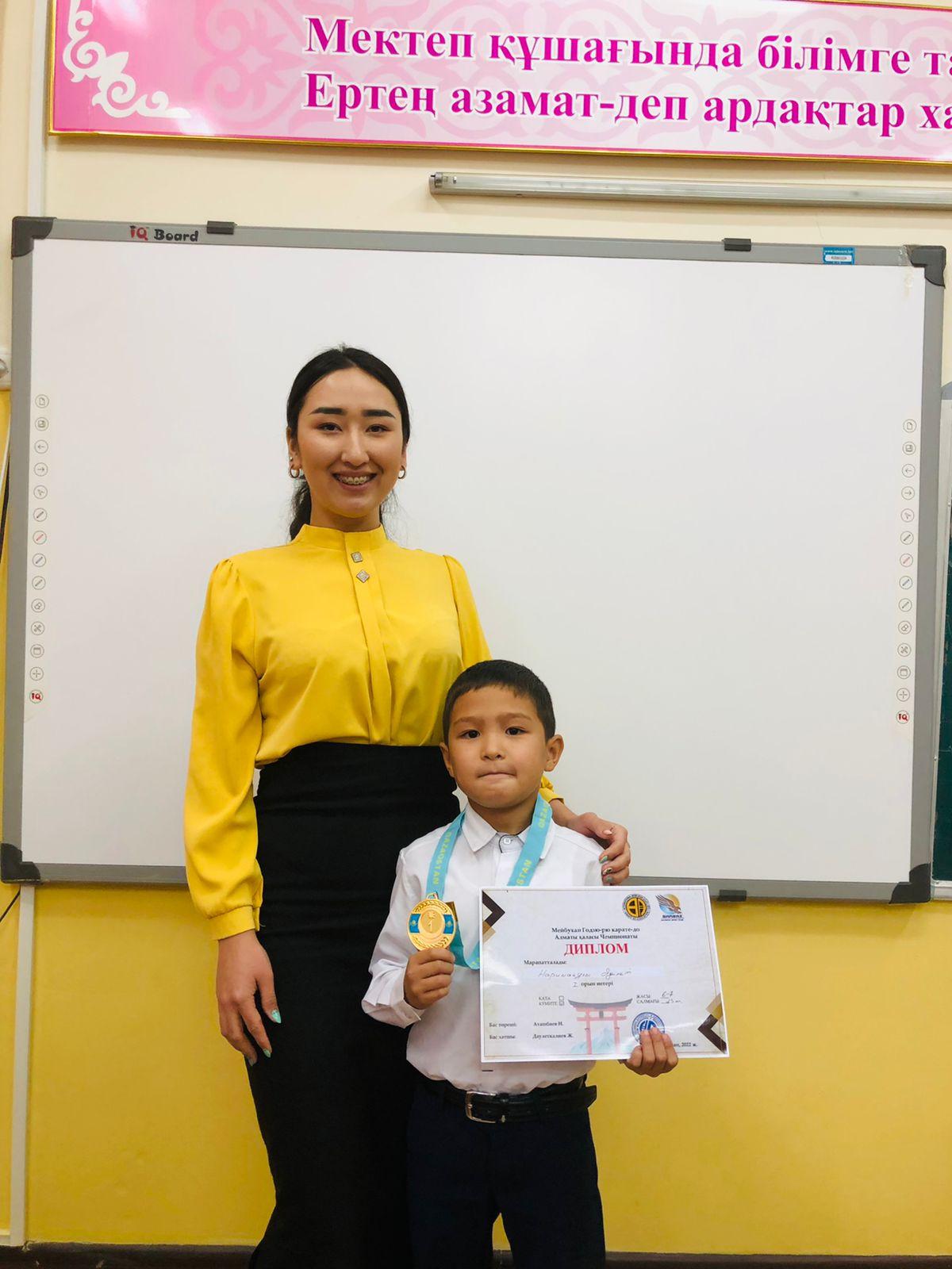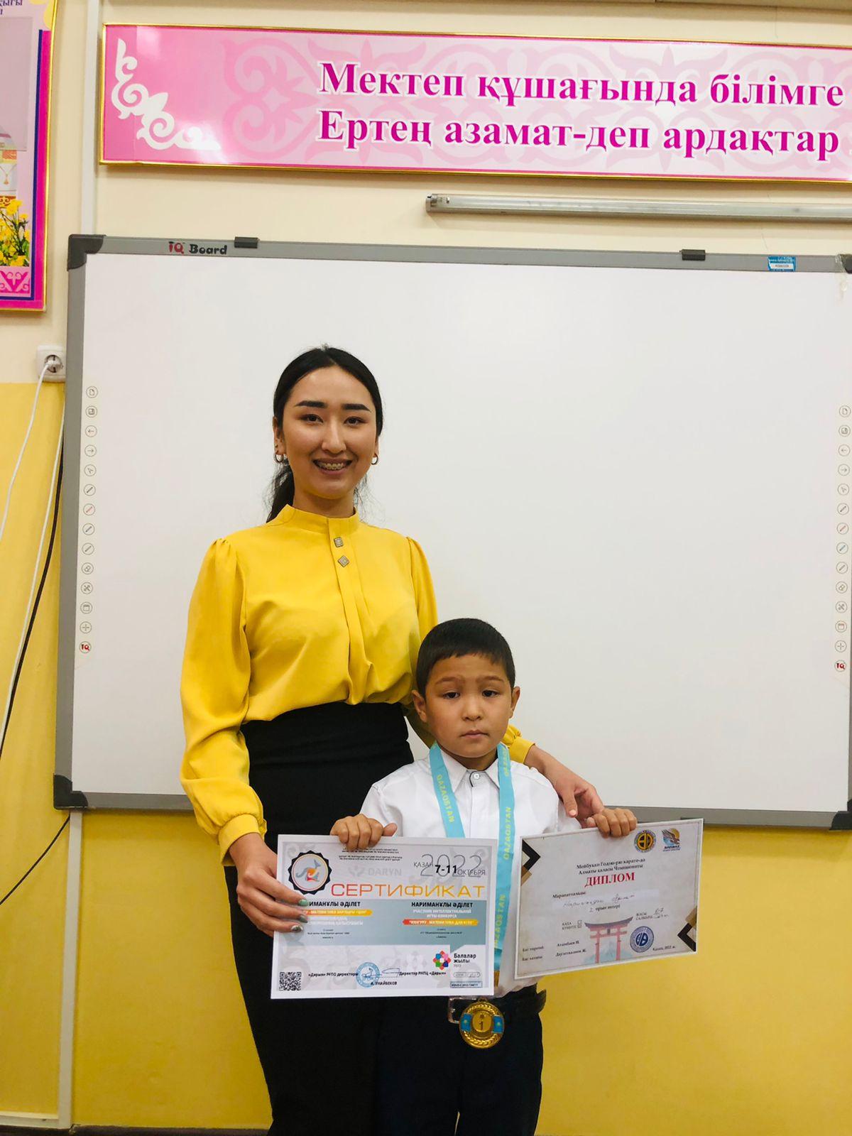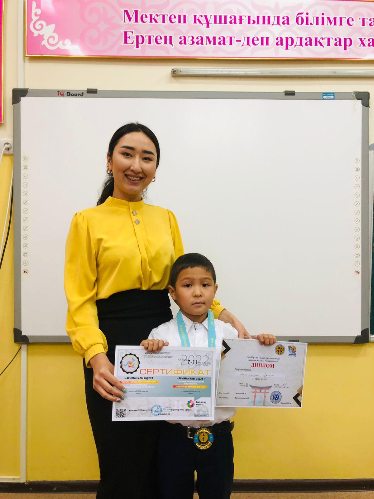 Алматы қаласы Алатау ауданы №26 жалпы білім беретін мектептің 2 "К" сынып оқушысы Нариманұлы Әділет "Зерде" математикалық олимпиадасына қатысқаны үшін сертификатпен және Мейбухан Годзю-рю карате-до қатысып, 1-орынмен марапатталды.