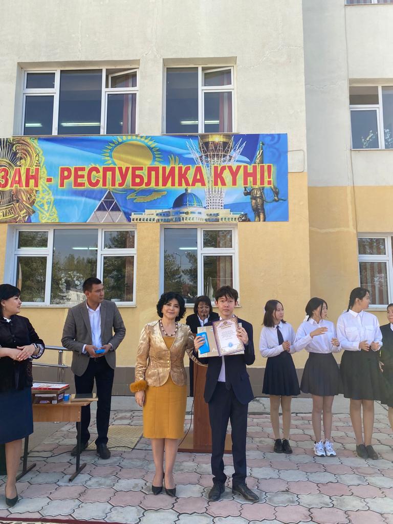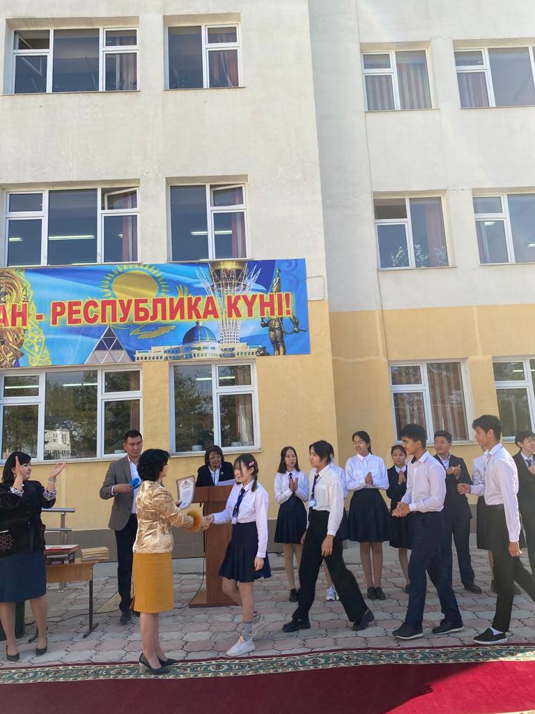 21.10.2022ж, Алматы қаласы Алатау ауданы №26 жалпы білім беретін мектепте 25 қазан-Республика күніне орай «Мен сені мақтан тұтамын-Қазақстан!» тақырыбында салтанатты жиын өткізілді.Мектеп басшысы Сейтахметова Галя Ақылбекқызы іс-шараға қатысқан білім алушыларды құттықтай отырып, мадақтама грамотасымен марапаттады.