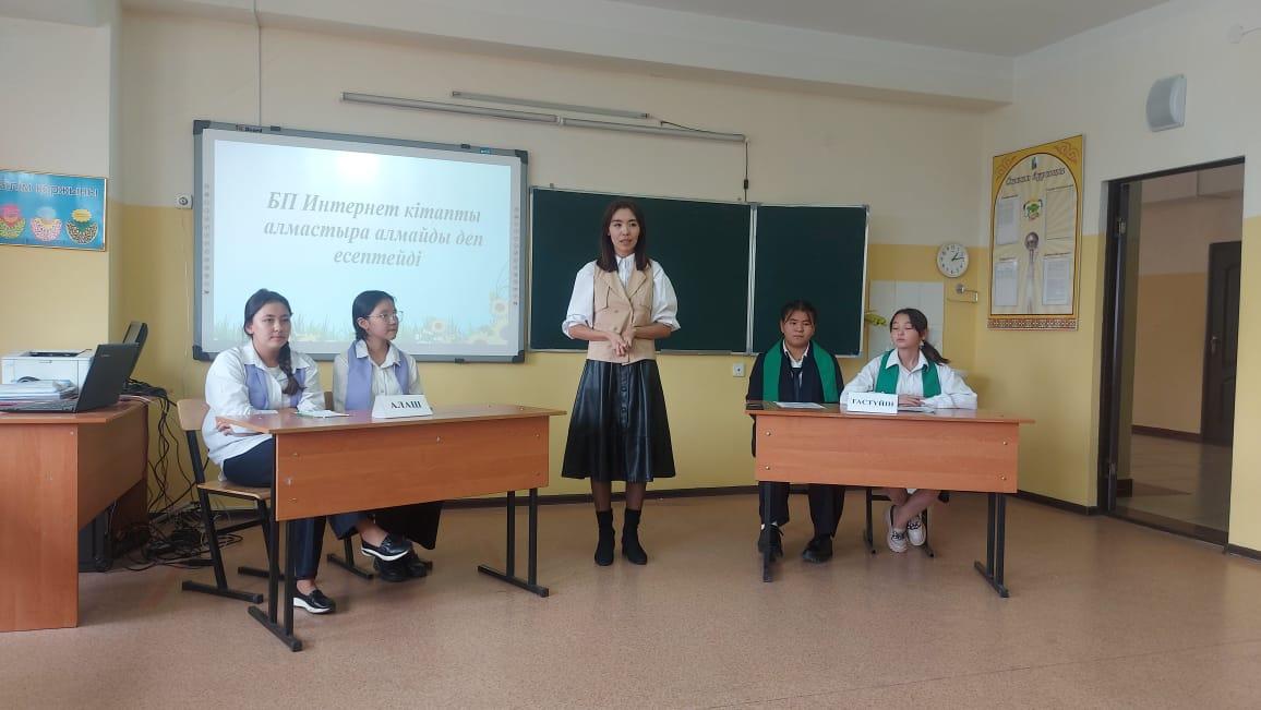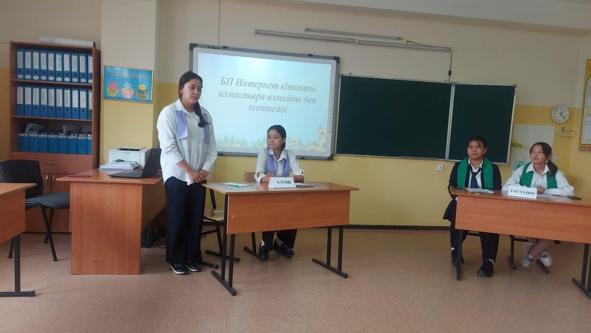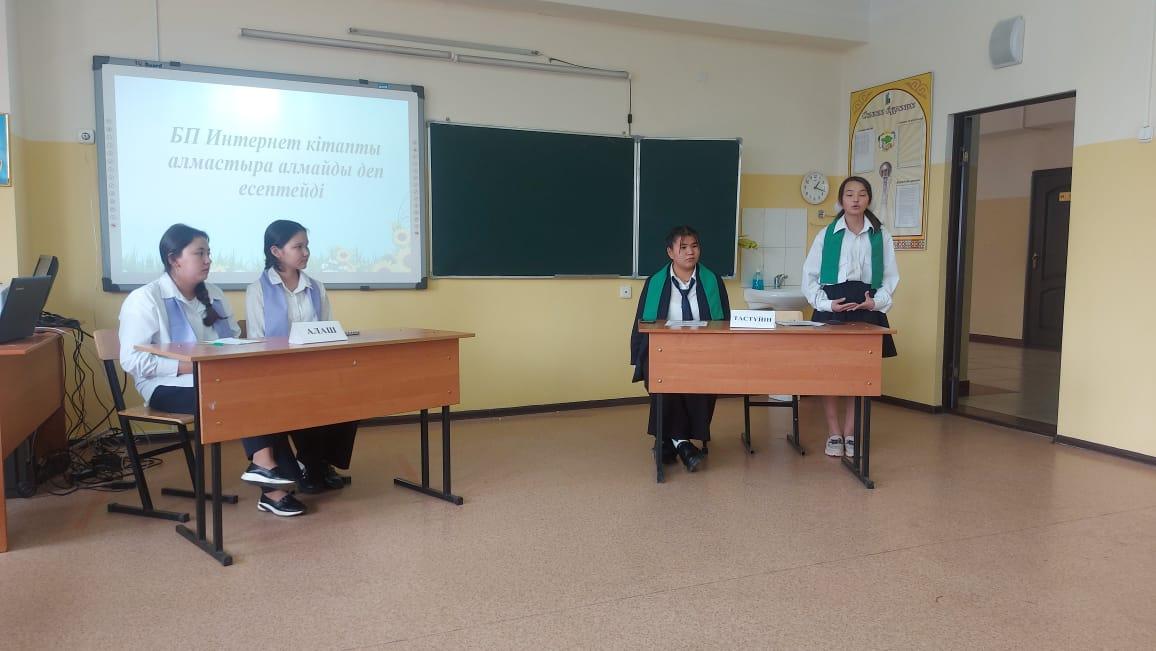 Алматы қаласы Алатау ауданы №26 жалпы білім беретін мектебінде 2022-2023 оқу жылында «БП Интернет кітапты алмастыра алмайды деп ессептейді» тақырыбында 8-сыныптар арасында дебат өткізілді.