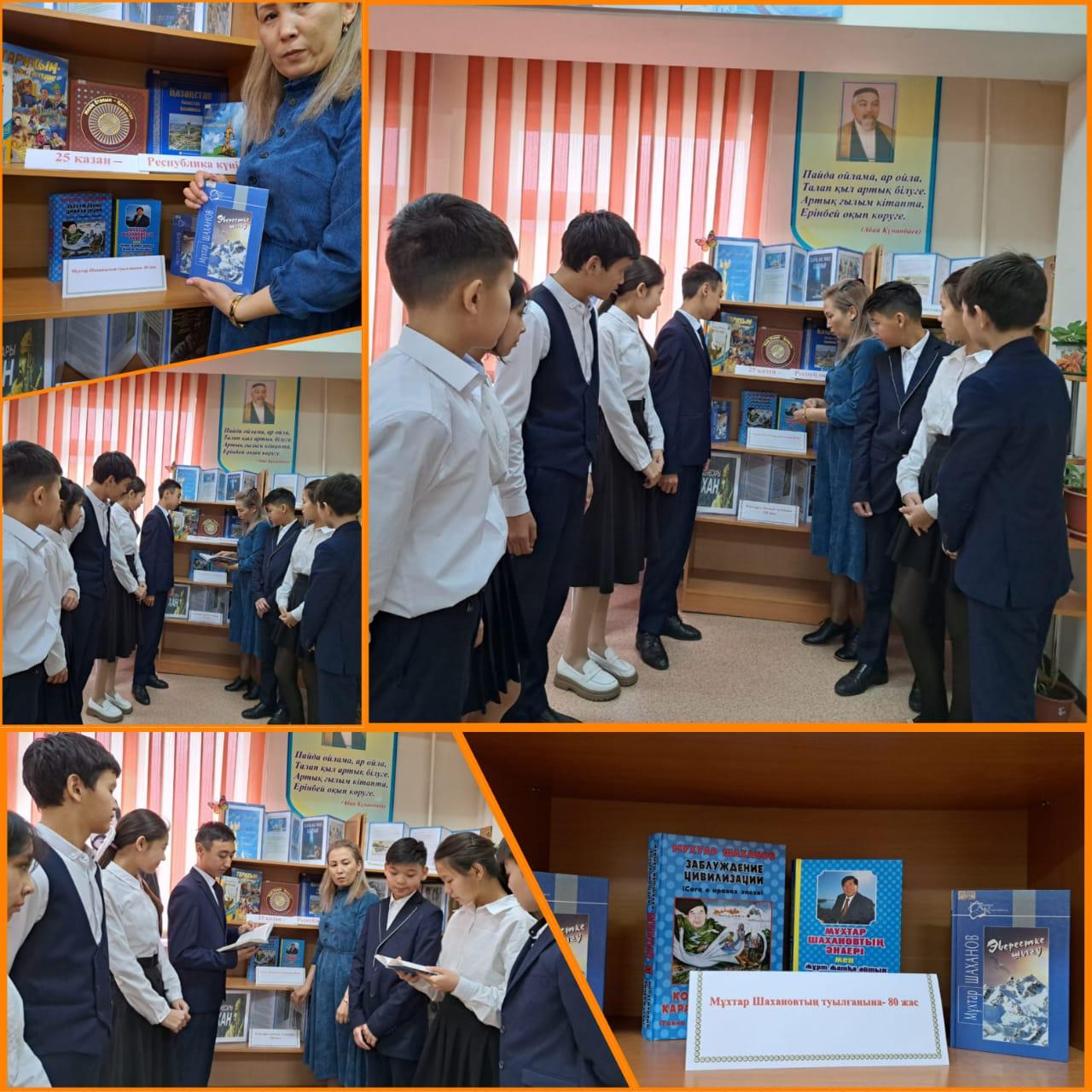Алматы қаласы Алатау ауданы №26 жалпы білім беретін мектептің кітапханасында Мұхтар Шахановтың-80 жылдық мерейтойына орай "Ұлт рухының шырақшысы" тақырыбында мектептің білім алушыларымен ақынның шығармаларымен бөлісіп, шыңдала түсті. Мақсаты: Қазақ әдебиетінің дамуына үлес қосқан Мұхтар Шахановтың өмірі мен шығармашылығын насихаттау және таныстыру.