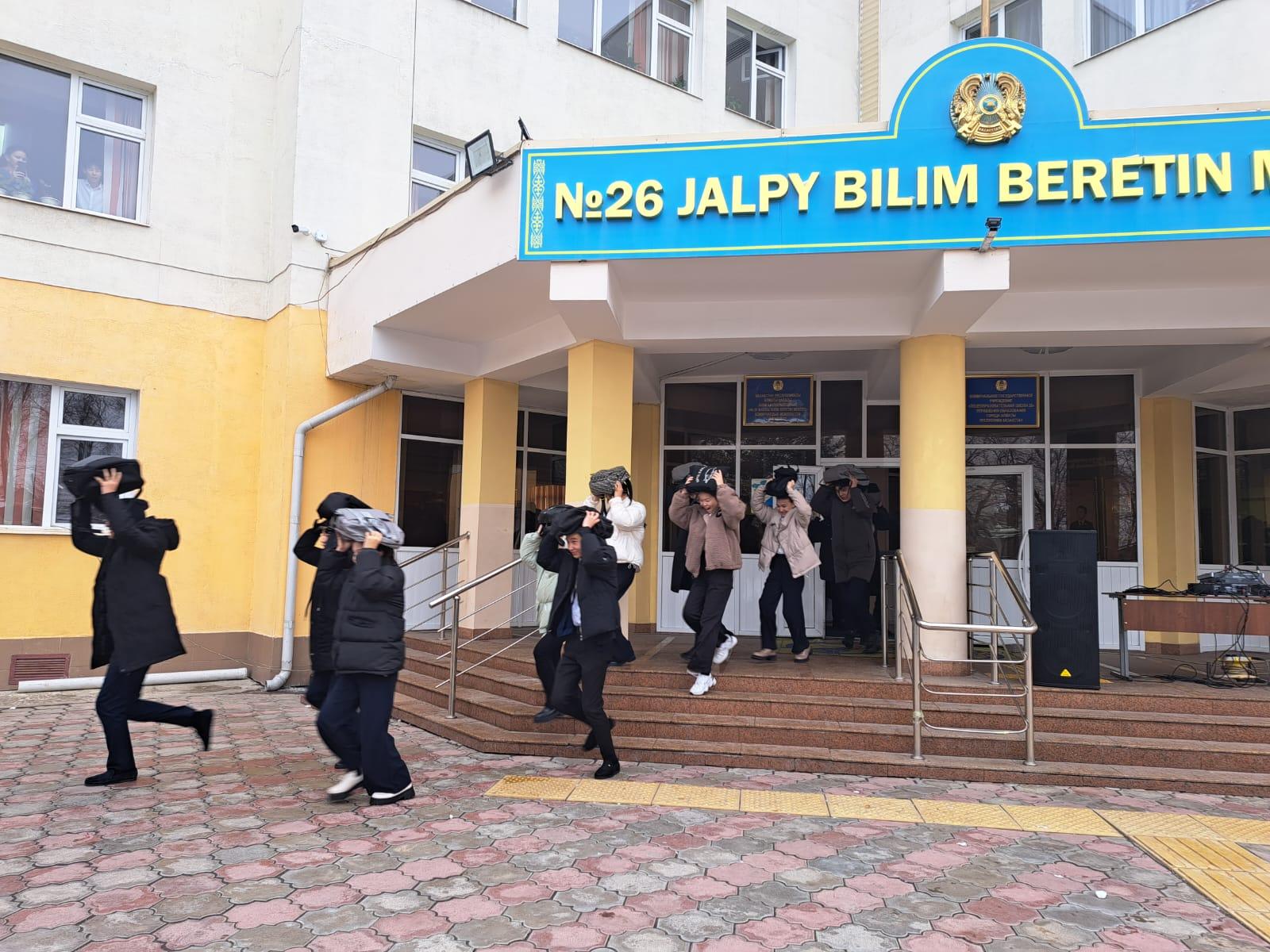Алматы қаласы Алатау ауданы №26 жалпы білім беретін мектепте 02.12.2022 жылы, сағат 11:00 –де Алматы қаласында жалпықалалық сейсмикалық жаттығу өткізілді. 1ауысым бойынша жаттығуға басшы -1, әкімшілік -8, кіші қызыметкерлер-18,мұғалімдер -34, және 1500 білім алушылар қатысты. Жер сілкінісі, өрт қауіпсіздігі кезіндегі зардап шеккен адамдарға алғашқы көмек көрсету,түсіндірме жұмыстарын жүргізу, іс-шараларды ұйымдастыру, сондай-ақ қызметкерлер мен білім алушылардың сауатты іс-әрекеттері мен дұрыс мінез-құлқы іс-тәжірибелік (практикалық) дағдылар көрсетілді.