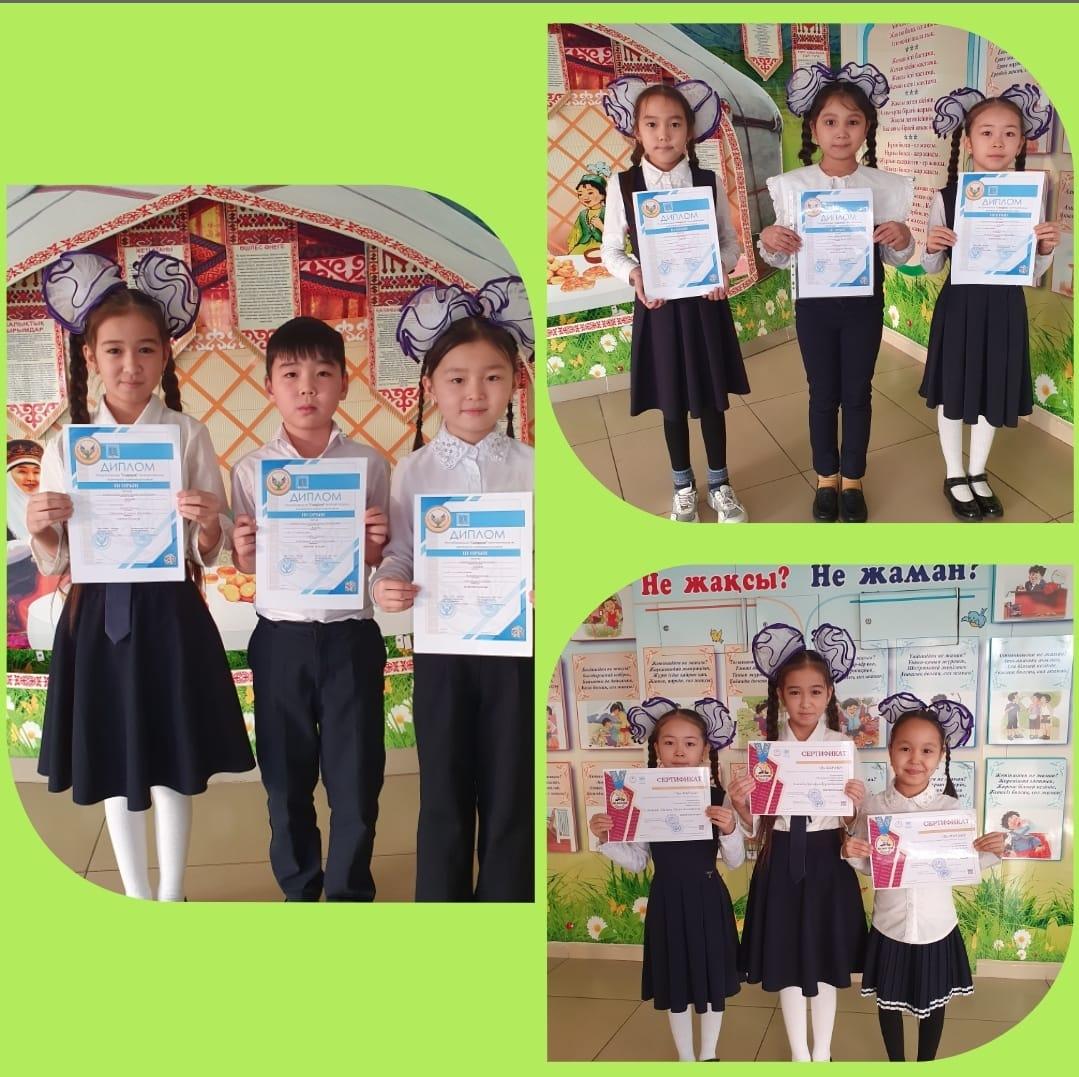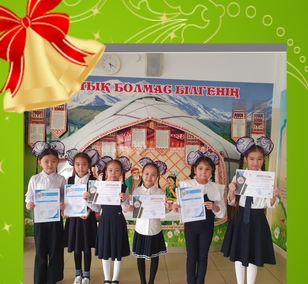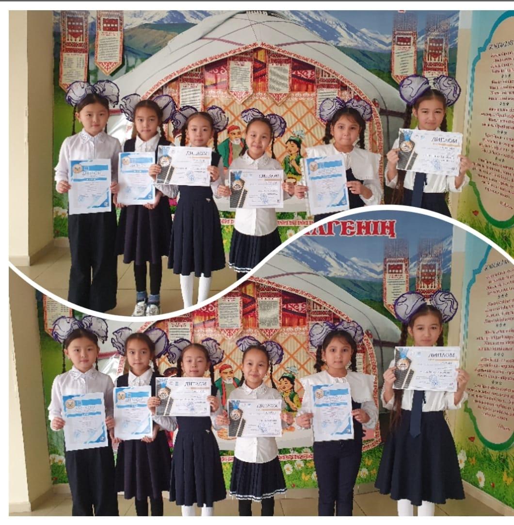 " ӘЛ-ФАРАБИ " республикалық зияткерлік олимпиадасының жеңімпаздары I,IIдәрежелі дипломмен марапатталды. Сынып жетекшісі:Умбетбаева Гулбахыт Ергешовна