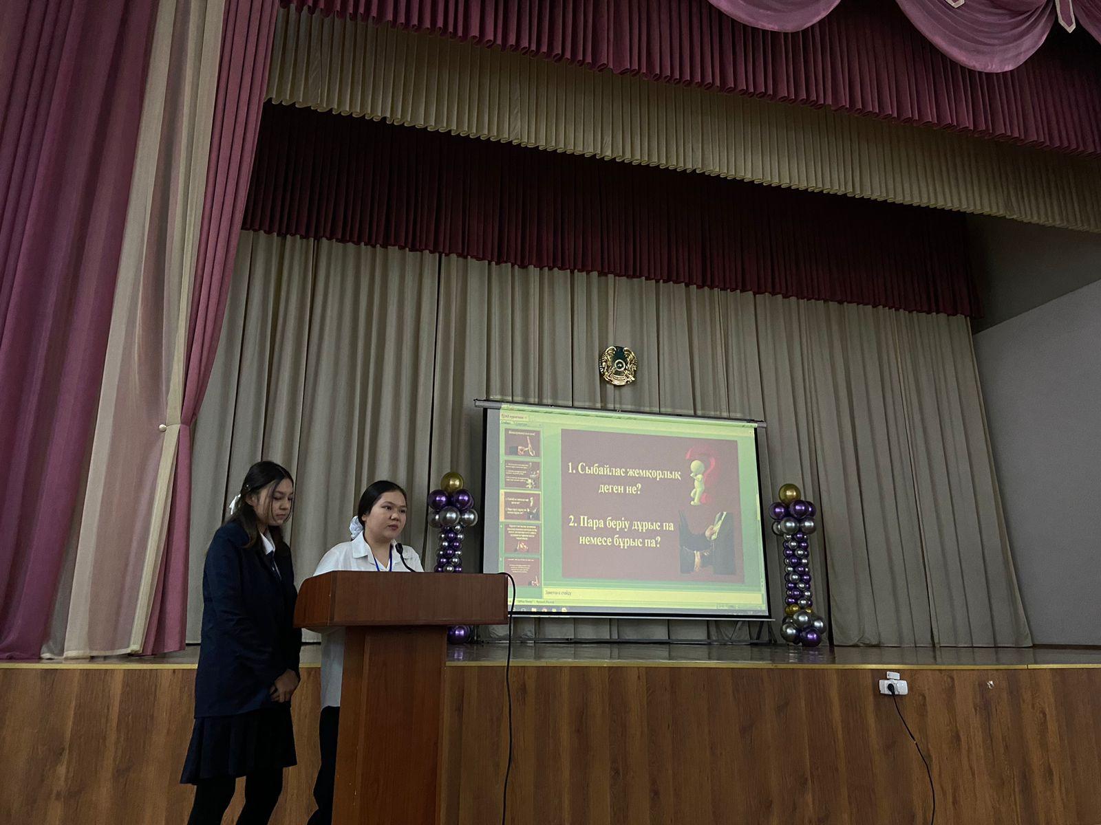 Алматы қаласы Алатау ауданы №26 жалпы білім беретін мектепте "Адал ұрпақ" еріктілер клубының жұмыс жоспарына сәйкес, сыбайлас жемқорлыққы қарсы білім беруді ұйымдастыру бағытында "Адал ұрпақ-адал жол!" тақырыбында 9-сынып білім алушылар арасында жоба қорғады. Үздік деп танылған сыныптар арнайы грамотамен марапатталды. Ұйымдастырушы аға тәлімгер: Зейнолданова Н.С