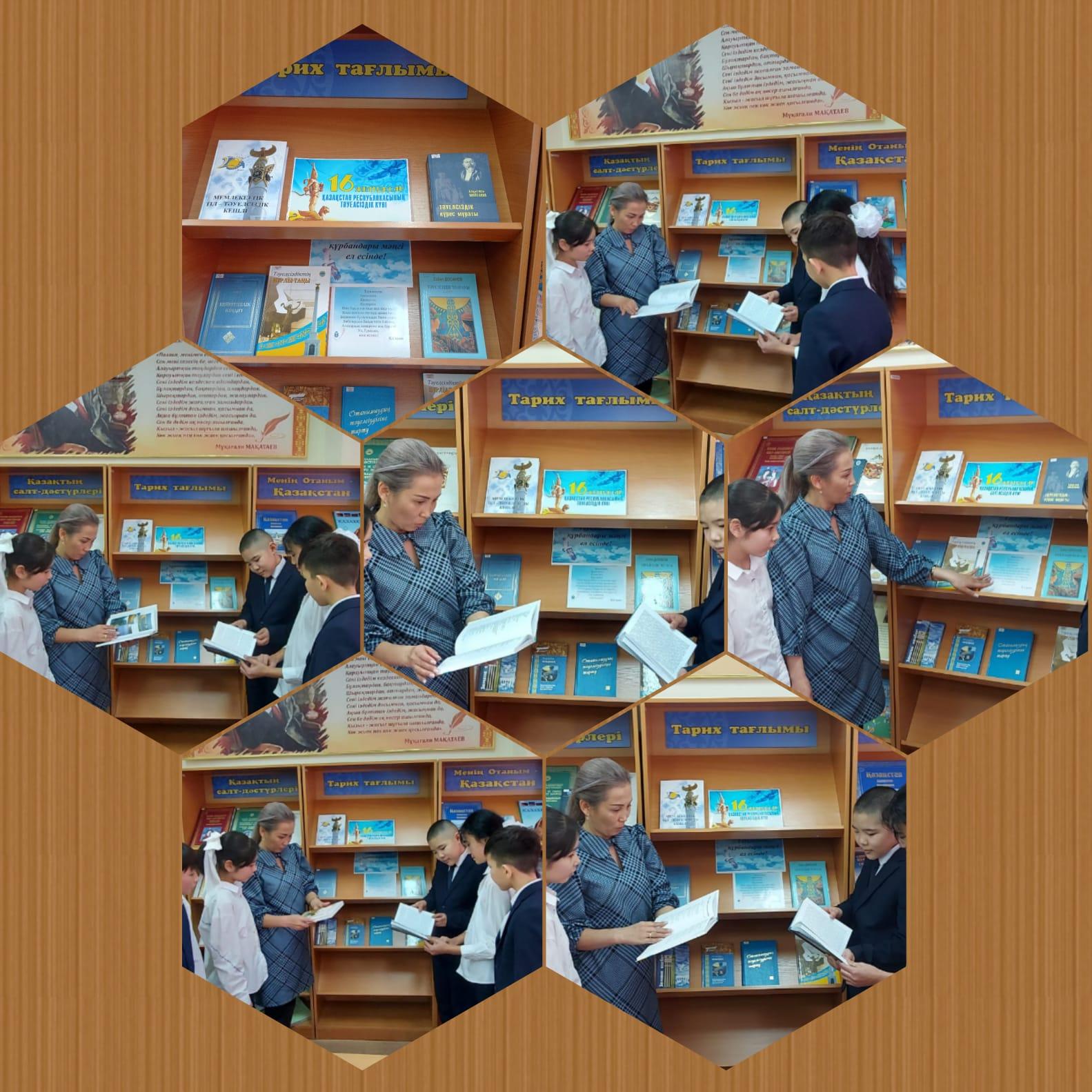 Алматы қаласы Алатау ауданы №26 ЖББмектептің 7 "Г" сынып білім алушылары "Тәуелсіздіктің нұрлы таңы" атты кітап көрмесіне қатысып,өз ойларымен бөлісті. Көрмеге Тәуелсіздікке арналған кітаптар қойылды. Мақсаты: Білім алушыларға Қазақстанның өткені мен бүгінгі өмірін салыстыра отырып, өз еліміздің даму тарихын, ата - баба аманатына адал болуға, ерлігінен үлгі алуға, бабалар рухын асқақтата дәріптей білуге үйретіп, Тәуелсіздіктен бергі 31 жыл ішіндегі Қазақстан жетістіктері туралы түсінік қалыптастыру. Кітапхана меңгерушісі: Мергенбаева А.К