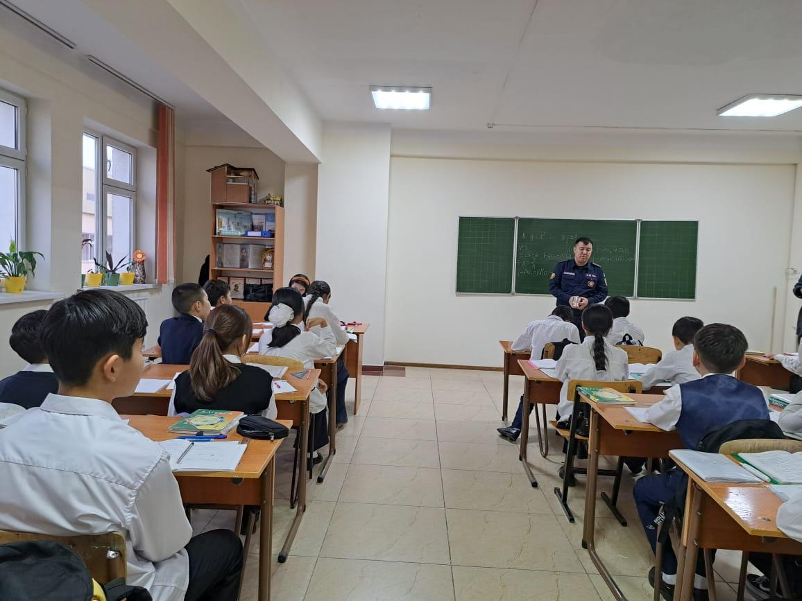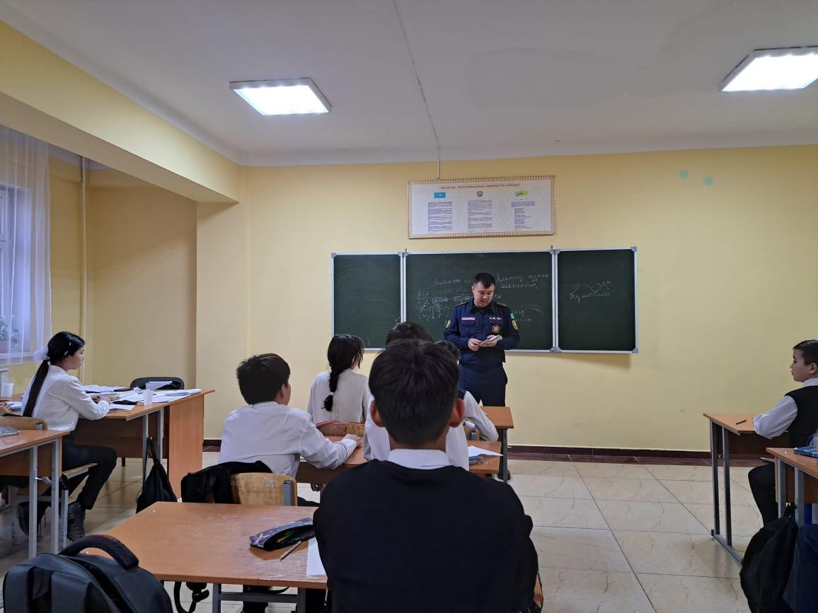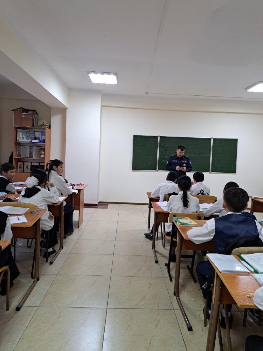 Алматы қаласы, Алатау ауданы №26 жалпы білім беретін мектепке, Алатау ауданы ТЖ басқарма қызметкерлері инженер лейтенант г/з Қасенов Мадияр Айдарұлы мен Федоров Мадияр Еркінұлы бірлесіп, қысқы кезең (мұзда) , су айдындарында балалардың өліміне жол бермеу мақсатында білім беру нысандарында "Абайлаңыз, жұқа мұз!" қауіпсіздік акциясын өткізу жопарына сәйкес білім алушыларға қыс мезгілінде , мұздағы қауіпсіздік шараларын түсіндіру жұмыстарын жүргізді. "Абайлаңыз жұқа мұз! Осторожно! Тонкий лёд!" , " Пиротехникалық өнімдерді қауіпсіз қодану бойынша , 200 дана жадынамалар таратылды.