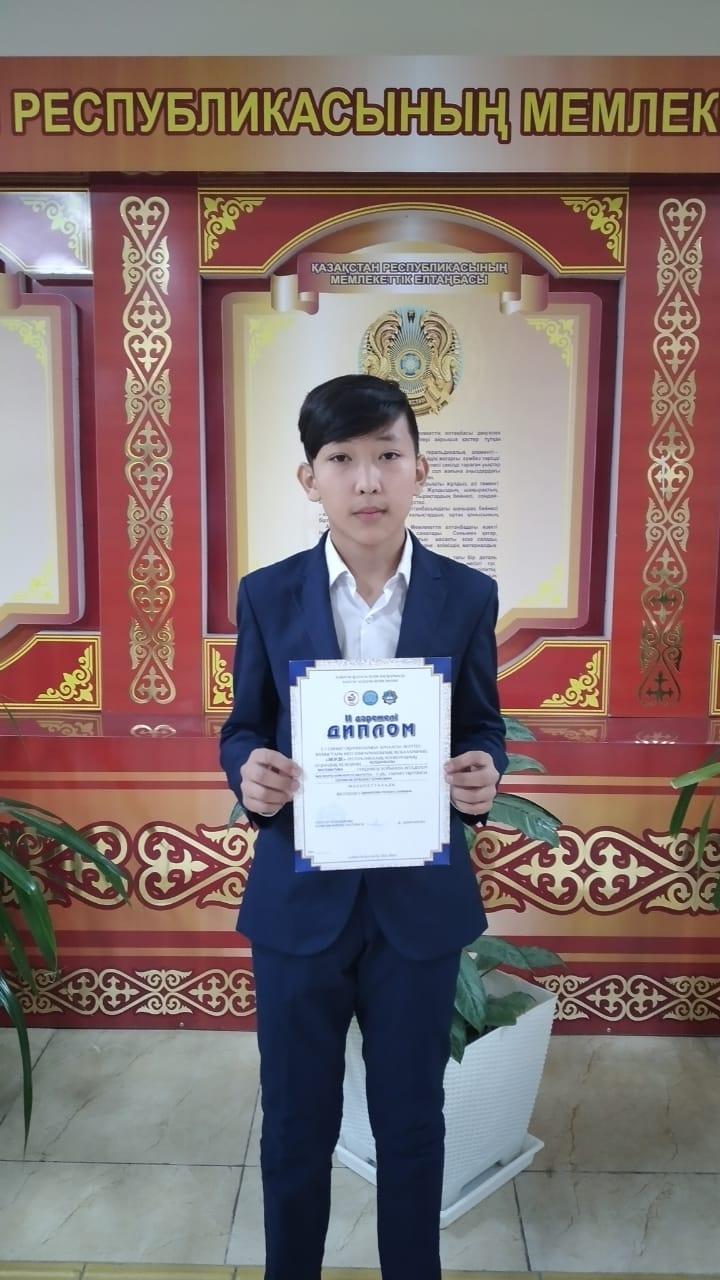 секциясы бойынша жүлдегері №26 ЖББМ 9 «Г» сынып оқушысы ТӨЛЕНБЕК ЕРКЕБҰЛАН ДУЛАТҰЛЫ 3-дәрежелі дипломмен марапатталды.Жетекшісі Джакипова Р.С.