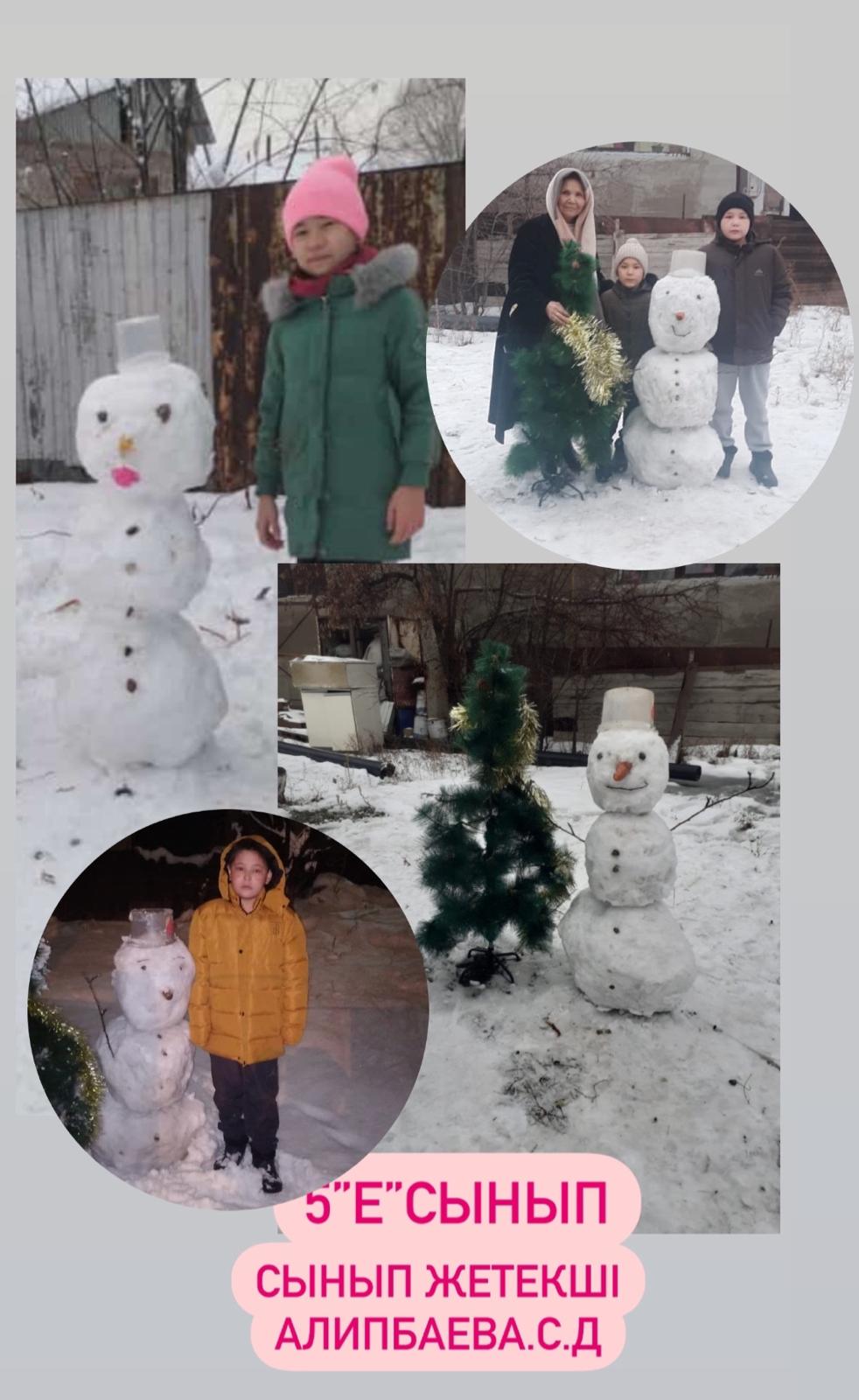 Алматы қаласы Алатау ауданы 26 ЖББ Мектептің 5”Е”сынып оқушыларының “Көңілді аққала”тақырыбындағы қысқы демалыстағы аққала жасау үстінде. Сынып жетекшісі Алипбаева.С.Д