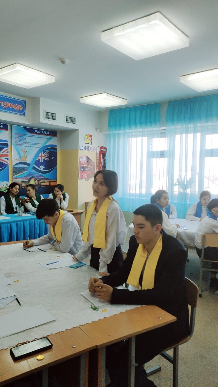 "Can money buy happiness with money yes or no?" тақырыбында пікір -талас сайысы өтті. Мақсаты: білім алушылардың белгілі бір фактілерді зерттеуге, болжауға, жүйелеп сөйлеуге, өз көзқарасын ашық та жүйелі етіп дәлелдеуге және өз бағытын дұрыс ұсынуға бағыттау. Ағылшын тілінде сөздік қорларын көбейту. Білім алушылар сайысқа өз деңгейінде дайындалып келгенін байқадық .Білім алушылар сайысқа белсенді қатысып, орындарын иелініп қайтты Жауапты мұғалім: Бегимова А.Ж