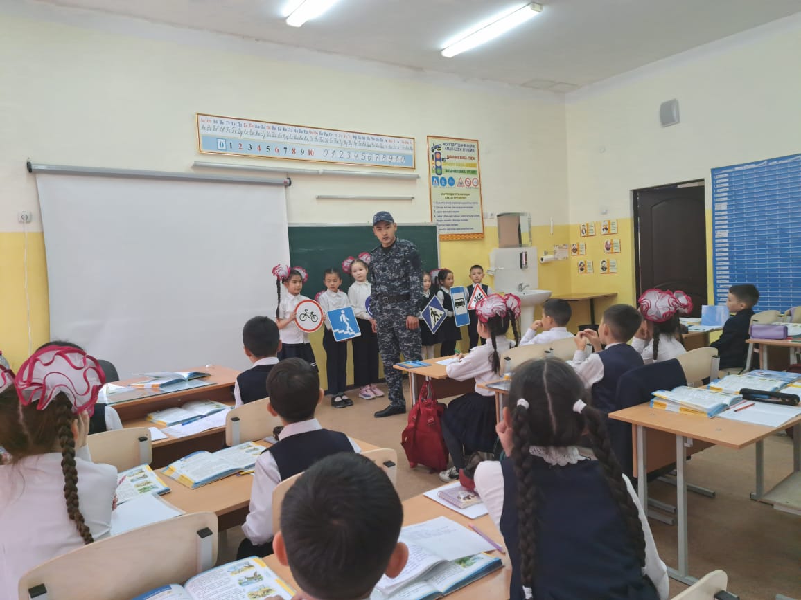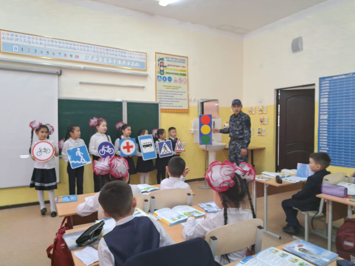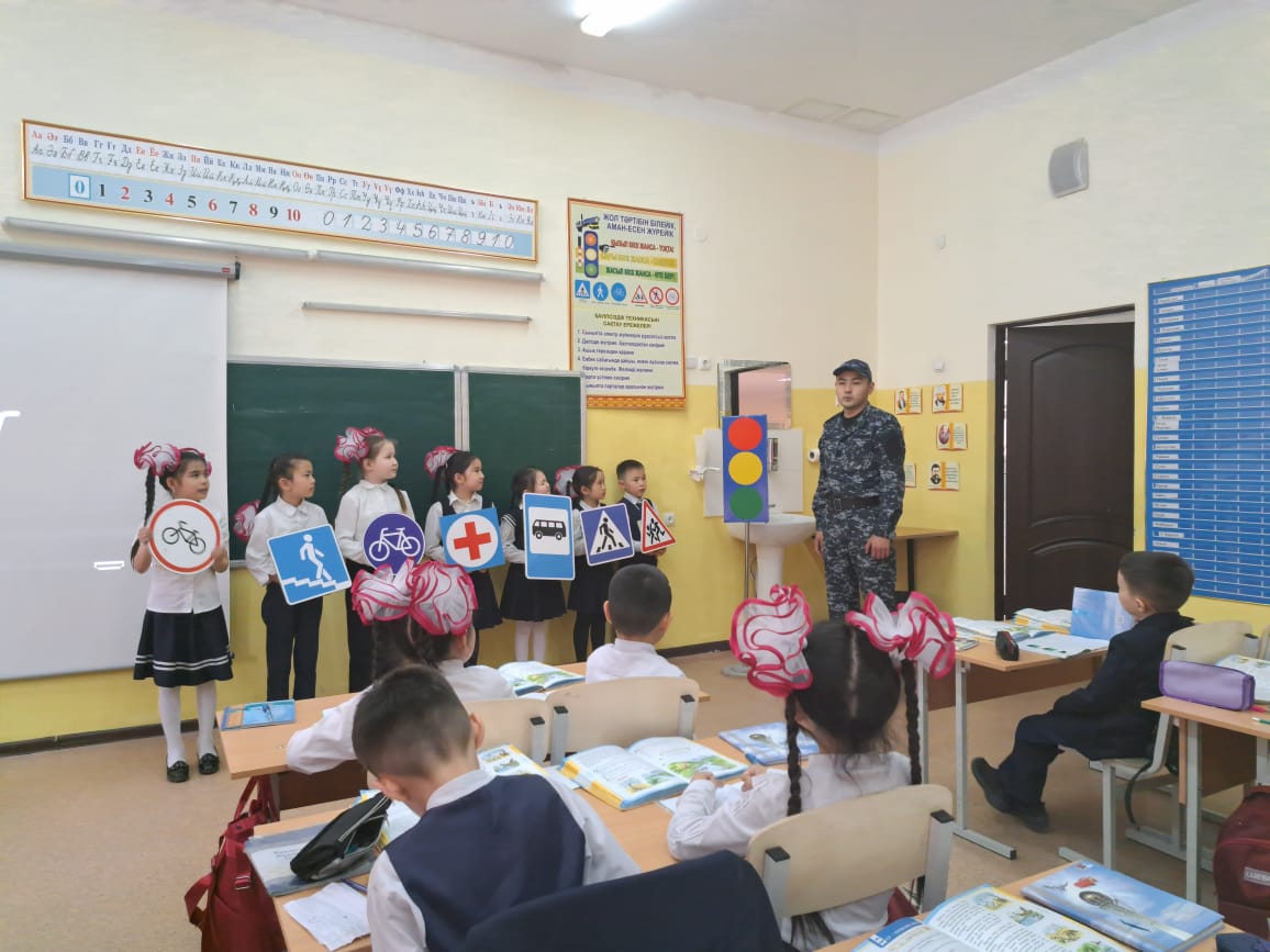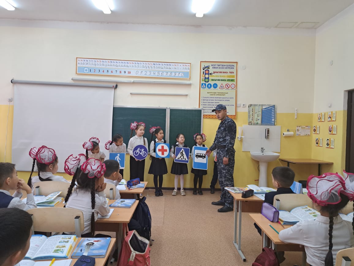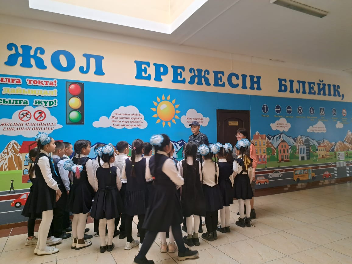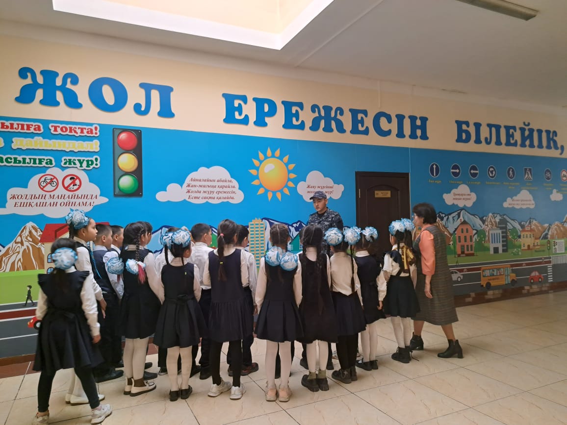 Алматы қаласы Алатау ауданы №26 жалпы білім беретін мектепте «Балалардың жолда жүру ережелері» тақырыбында мектептің полиция лейтенантты: Зиябеков Нурболат Ізбасарұлы түсіндірме жұмыстары жүргізілді.