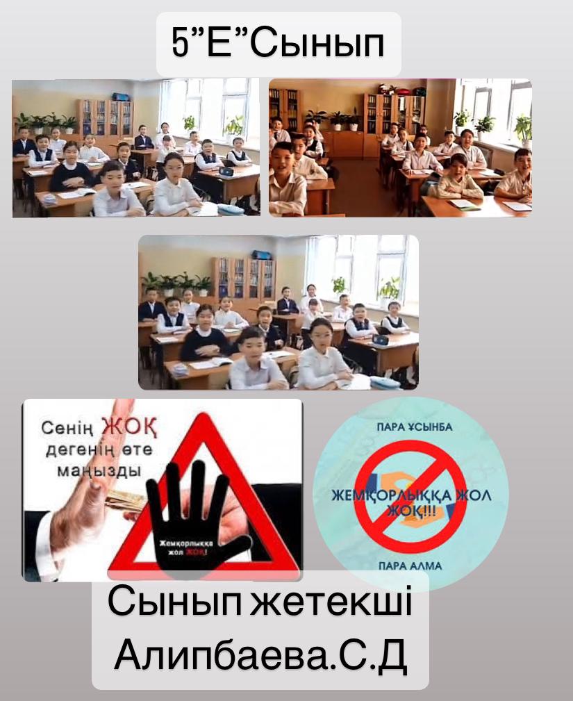 5”Е”сынып оқушылары “Жемқорлыққа қарсы күрес-бала көзімен” тақырыбында әңгіме жүргізілді.