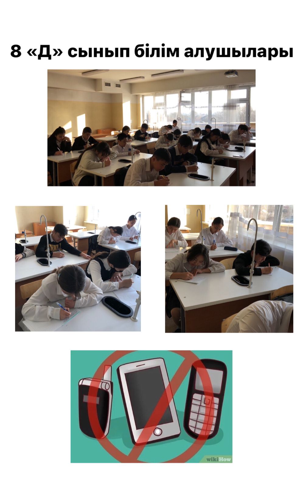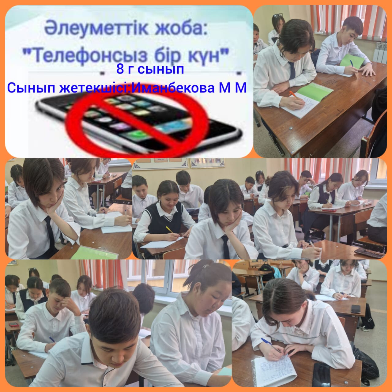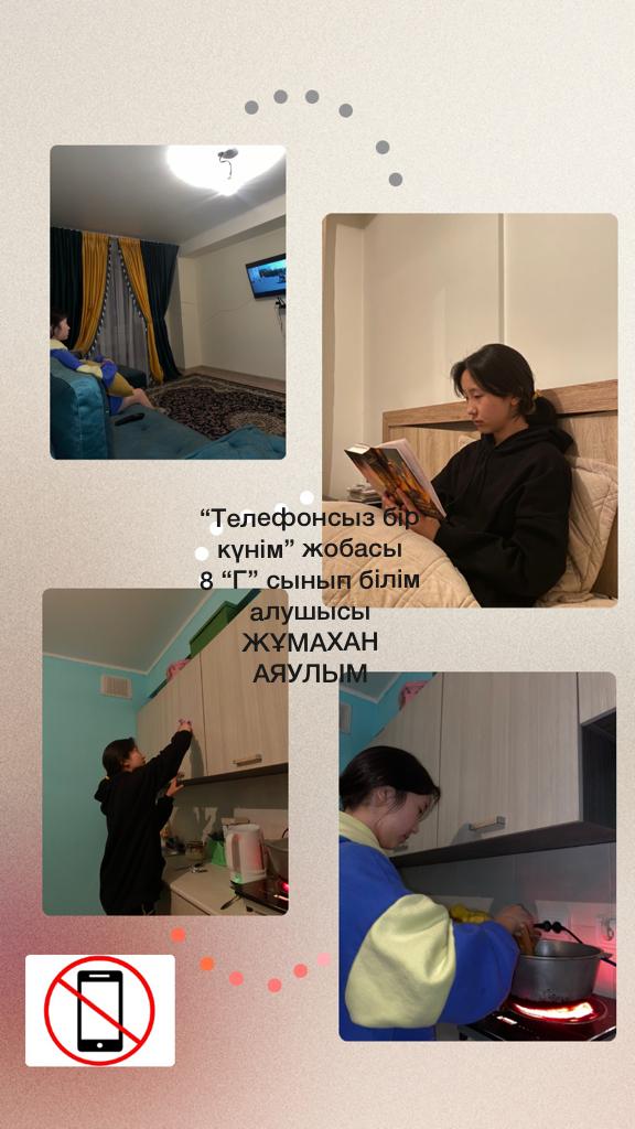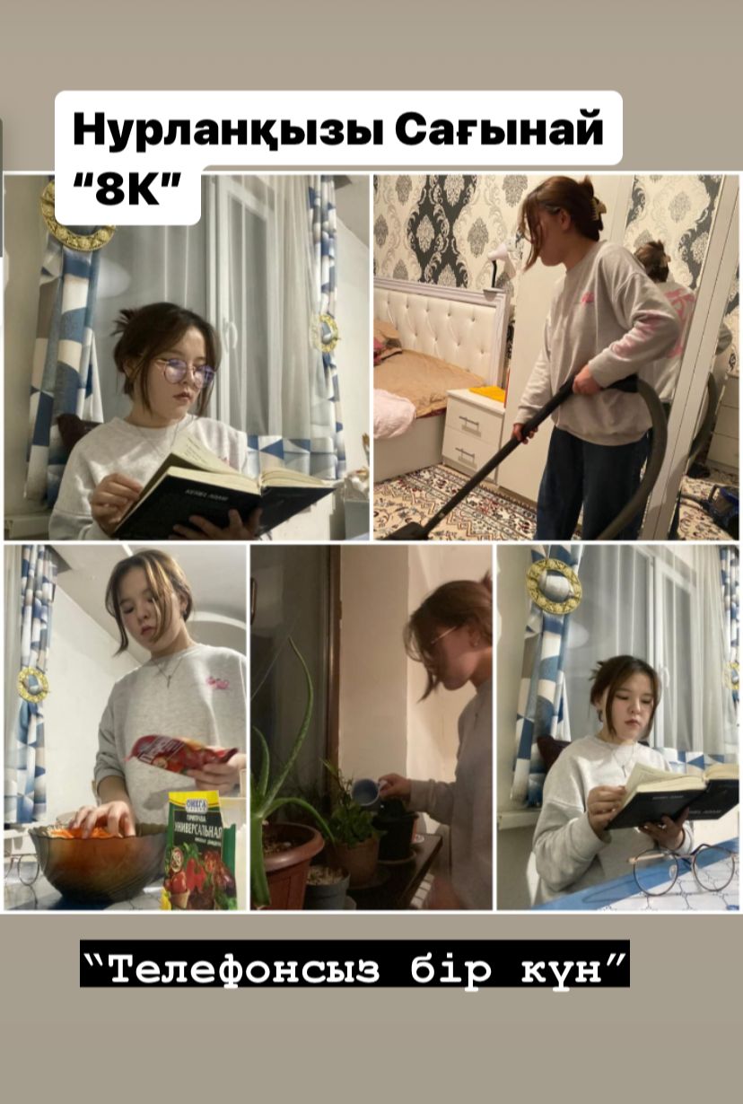 Бір күнгі демалыс уақыттарын телефонсыз атқарылған жұмыстары оқушының өзін- өзі қадағалауы, бір күнге жоспар құруы, өз- өзіне есеп беруі ата- аналары тарапынан қадағаланып отырды.