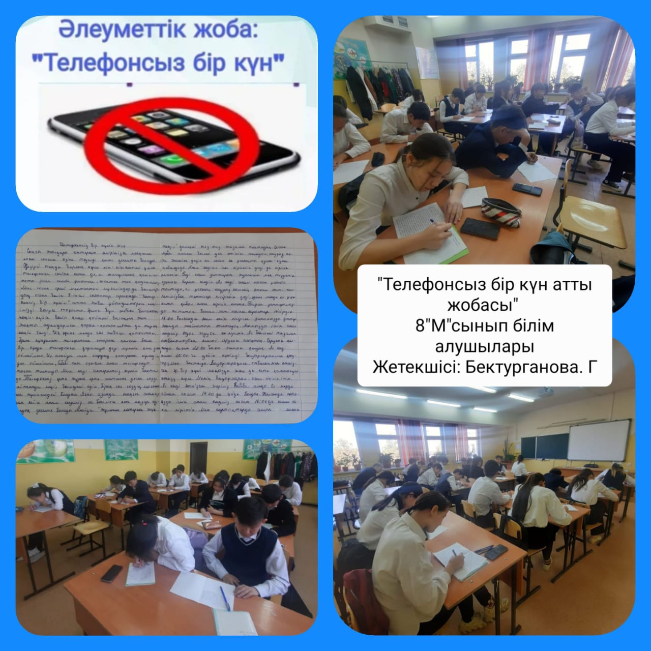Алатау ауданы №26 жалпы білім беретін мектепте 8-сынып білім алушылары арасында көктемгі демалыс кезінде «Телефонсыз бір күн» жобасы ұйымдастырылды.