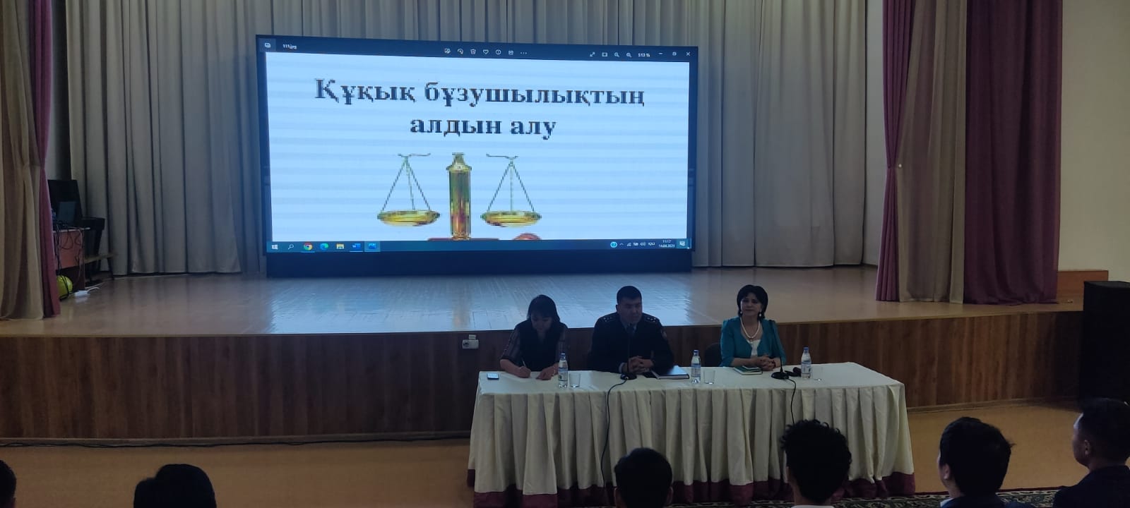 Құқық бұзушылықтың алдын алу мақсатында 8,9,10,11-сыныптар арасында Алатау аудандық кәмелет жасқа толмағандардың басшысы Дәріқұлов Исатай Махамбетұлымен бірлескен ұлдар жиналысы