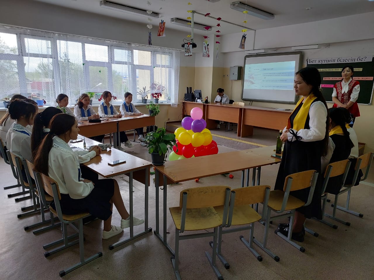 24 апрель 2023 0 1 2 3 4 5 «Бет күтімін білесің бе?» Оқушыларға терінің ағза үшін маңызын түсіндіру, бет терісінің ерекше түрлерін, маусымдық өзгерістерге байланысты үй жағдайында бетті күту әдістерін үйрету.