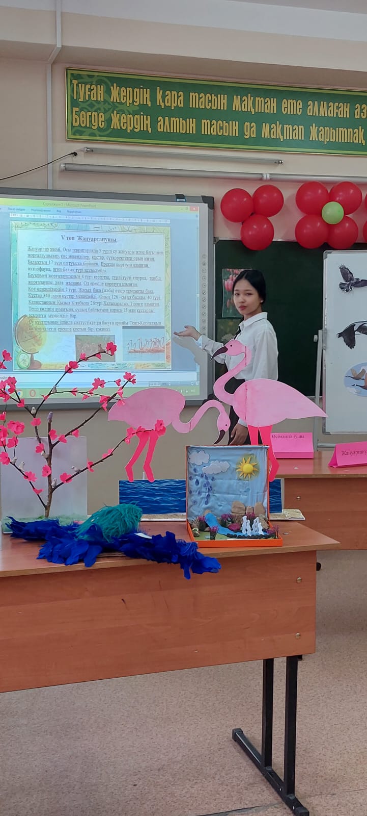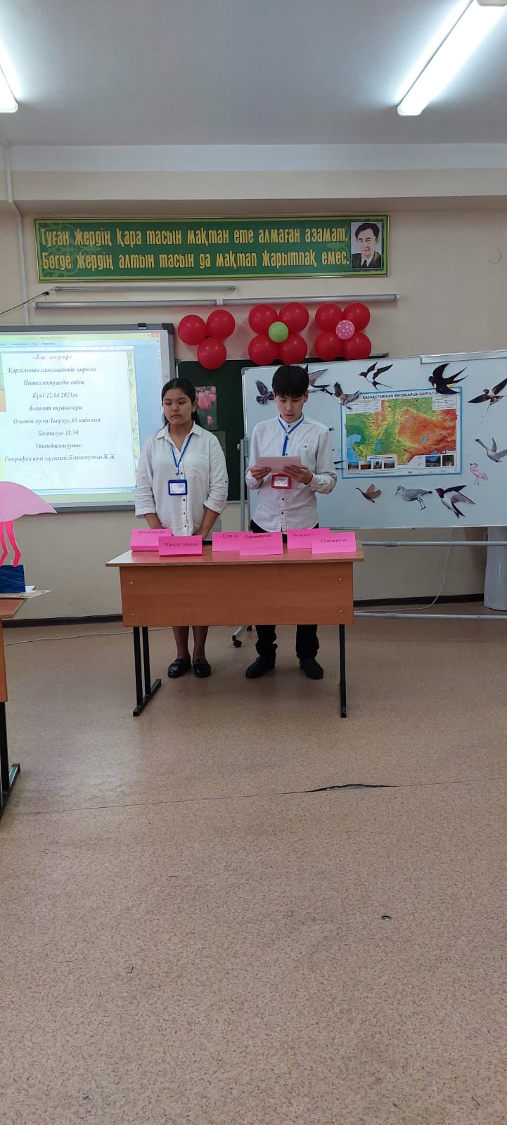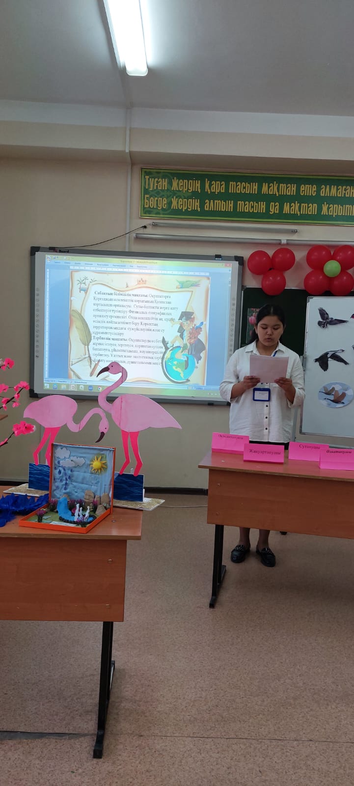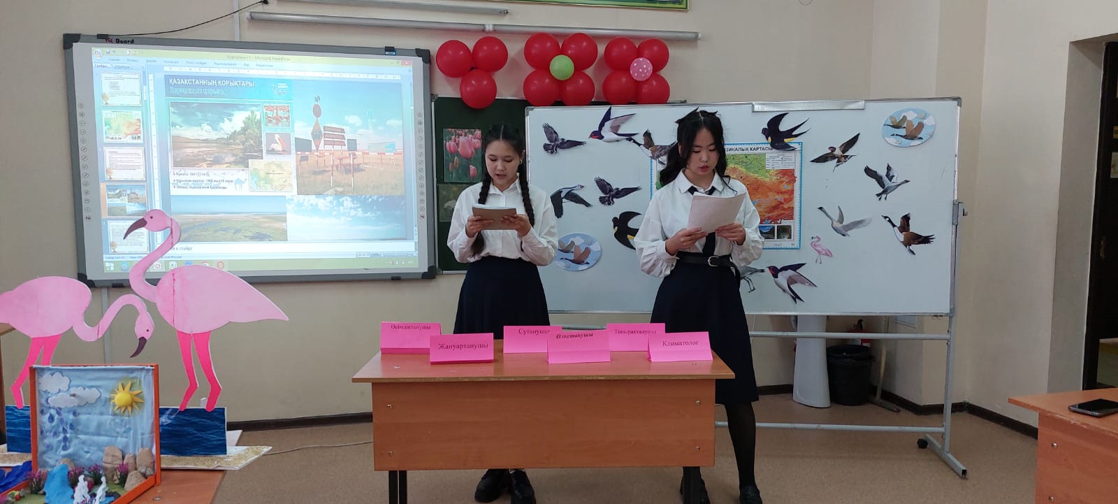 Оқушылар зерттеушілік, ғылыми ойлау қабілеттерін дамыту. Шығармашылық әлеуетін қалыптастыру. Білім алушылардың шығармашылық белсенділіктерін және танымдық қызығушылықтарын арттыру. Оқушыларға Қорғалжын мемлекеттiк қорығының Қазақстан картасында орналасуы. Сулы-батпақты жерге жату себептерiн түсiндiру. Физикалық-географиялық орналасу ерекшелiгi. Онда мекендейтiн аң, құстар, өсiмдiк жайлы мәлiмет беру. Қорықтың территориясындағы сужүйелерiнiң және су құрамын түсiндiру.