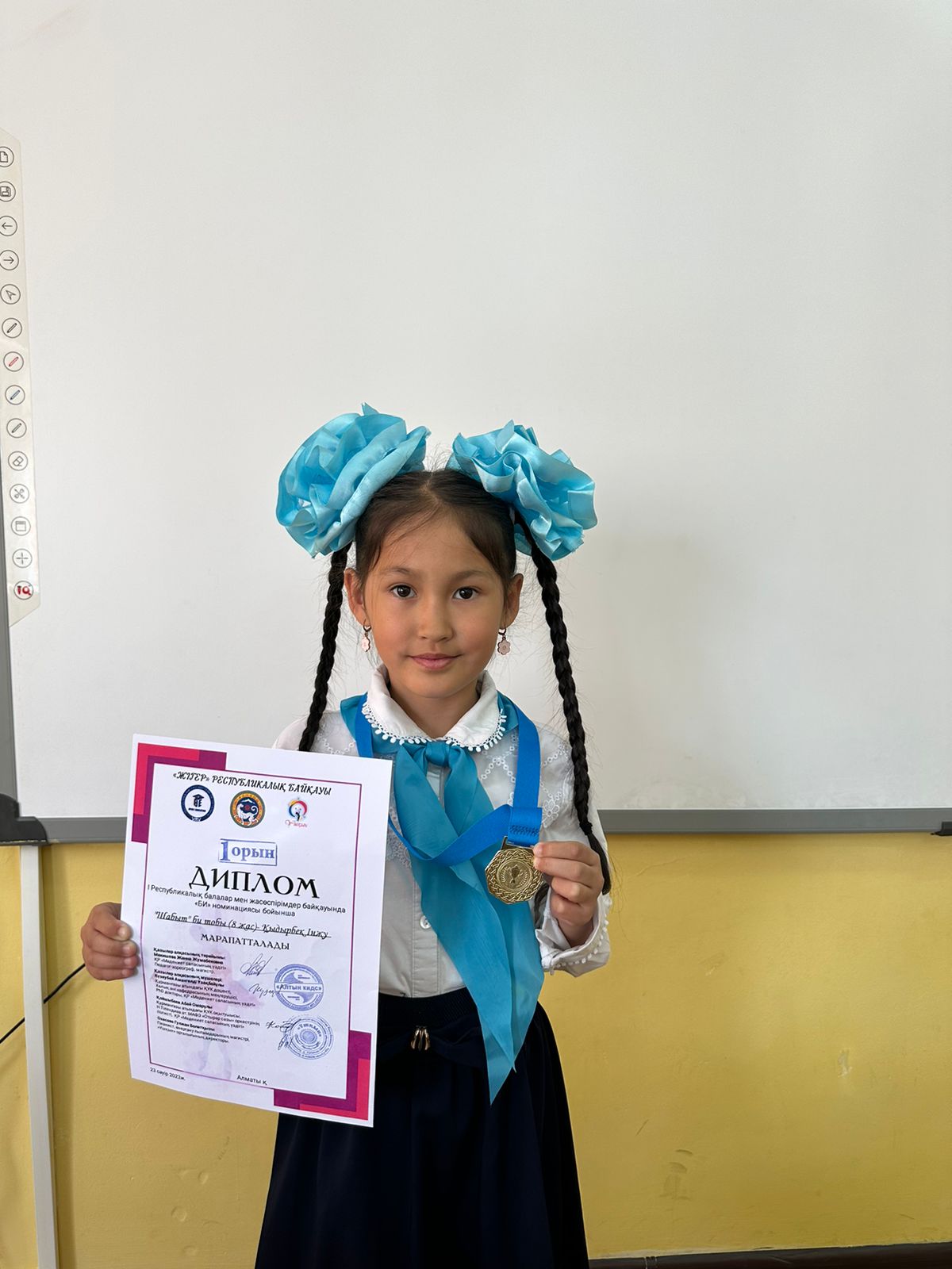 “Жігер” Республикалық байқауға қатысқан Алматы қаласы Алатау ауданы №26 жалпы білім беретін мектептің 2 "К" сынып оқушысы Қыдырбек Інжу би байқауынан І орын алды.