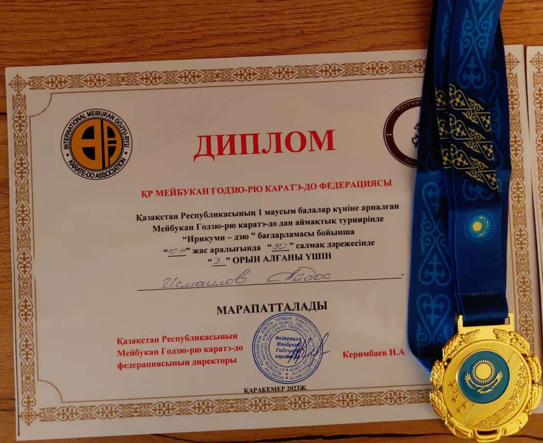 Алматы қаласы, Алатау ауданы №26 жалпы білім беретін мектептің 5 “В” сынып білім алушысы Исмоил Айдос ҚР 1 маусым күніне арналған Мейбукан Годзю-рю каратэ-до-дан аймақтық турнирінде “Ирикуми-дзю” бағдарламасы бойынша 10-11 жас аралығында “30 кг” салмақ дәрежесінде 1 орынмен марапатталды.