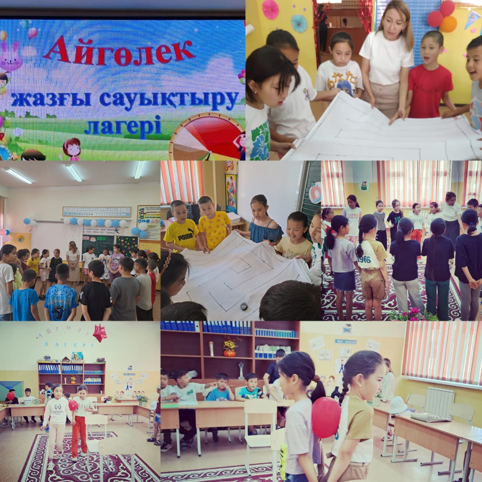 Алматы қаласы Алатау ауданы №26 жалпы білім беретін мектеп жанындағы "Айгөлек " жазғы демалыс лагерінің "Жалын" тобы, "Зымыран" тобы, "Тұлпар " тобы, "Балдәурен" тобы, "Балауса" тобы, "Қыран" тобы. Тақырыбы: "Менің көңіл күйім керемет!"