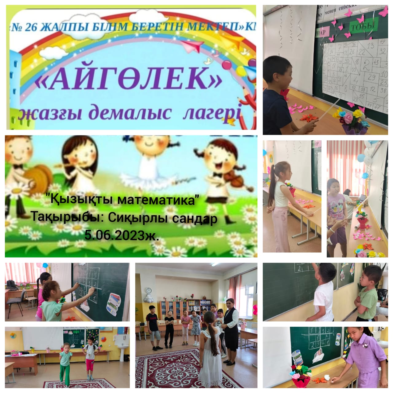 Алматы қаласы Алатау ауданы №26 жалпы білім беретін мектеп жанындағы "Айгөлек" жазғы демалыс лагерінің қызықты математика үйірмесінде "Сиқырлы сандар" тақырыбында танымдық сабағы өткізілді.