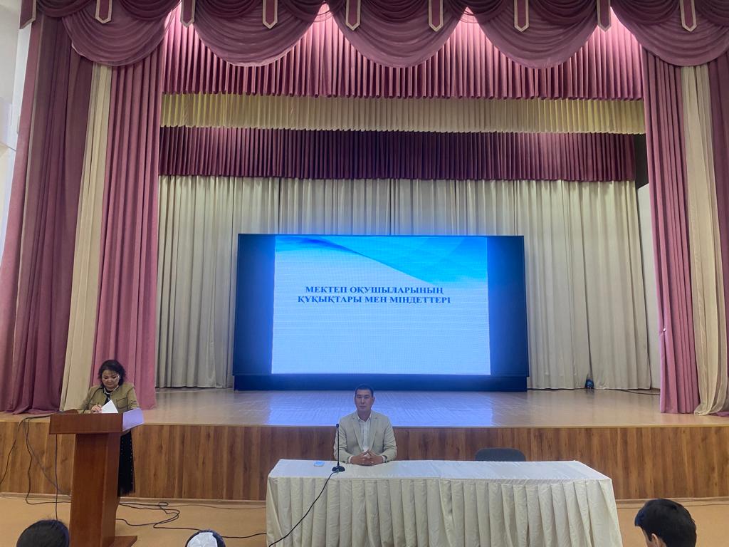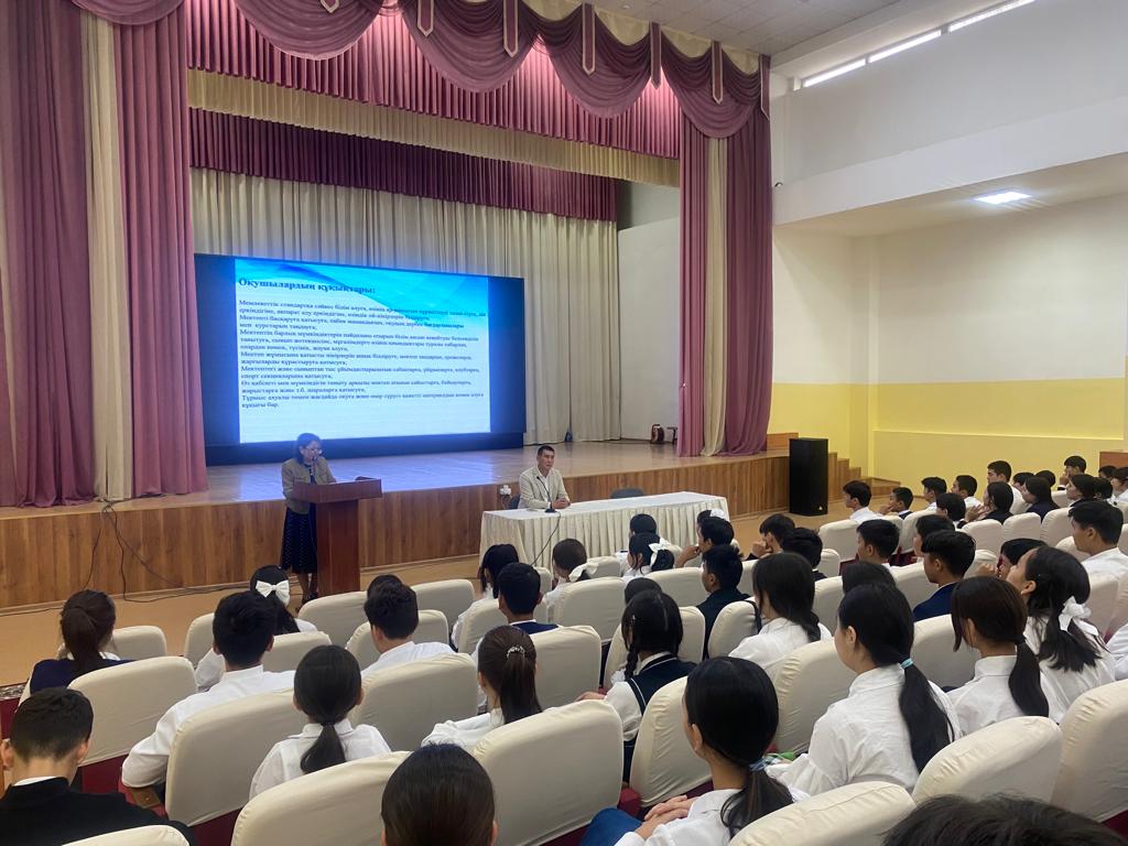 Құқық бұзушылықтың алдын алу мақсатында 8,9,10,11-сыныптар арасында Алатау аудандық кәмелет жасқа толмағандардың басшысы Дәріқұлов Исатай Махамбетұлымен бірлескен ұлдар жиналысы