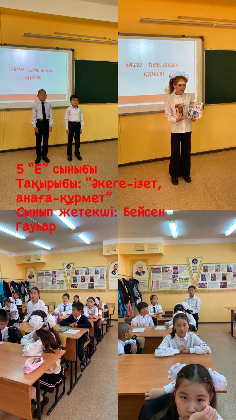 07 ноябрь 2023 0 1 2 3 4 5 Алматы қаласы Алатау ауданы №26 жалпы білім беретін мектептің 5 “Е” сынып білім алушыларына "Әкеге-құрмет, анаға-ізет” тақырыбында сынып сағаты өтті.