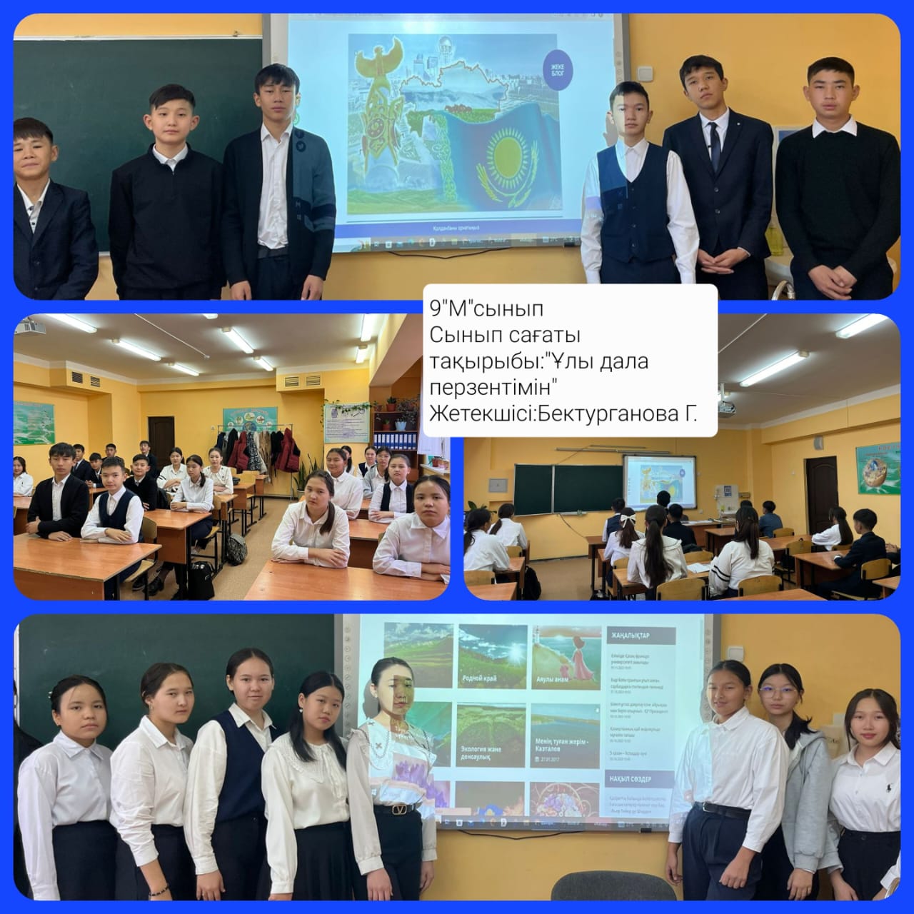 22 сентябрь 2023 0 1 2 3 4 5 Алматы қаласы Алатау ауданы #26 жалпы білім беретін мектепте 9"М" сынып білім алушылары. Сынып сағаты тақырыбы: " Ұлы дала перзентімін"