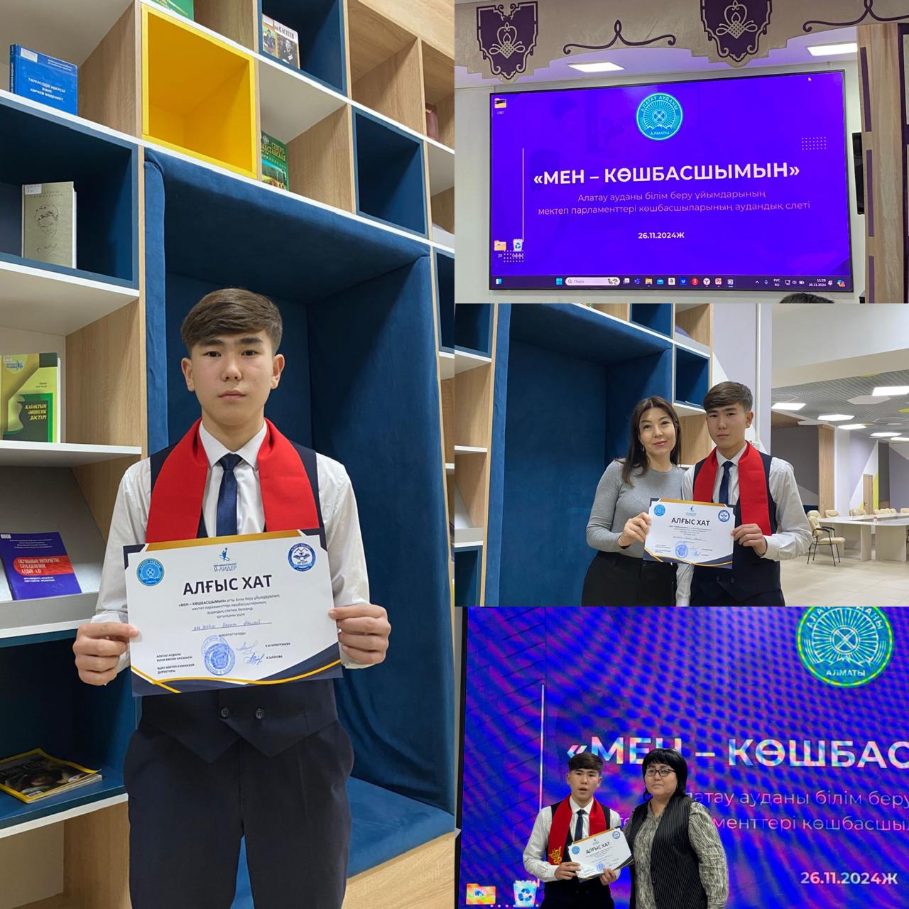 29 ноябрь 2024 0 1 2 3 4 5 Алматы қаласы Алатау ауданы №26 жалпы білім беретін мектептің 10"Б" сынып білім алушысы Бахыт Абылай Бауыржанұлы "Өзін-өзі басқару ұйымы президенттері" арасында ұйымдастырылған СЛЕТыны қатысып алғыс хатпен марапатталды