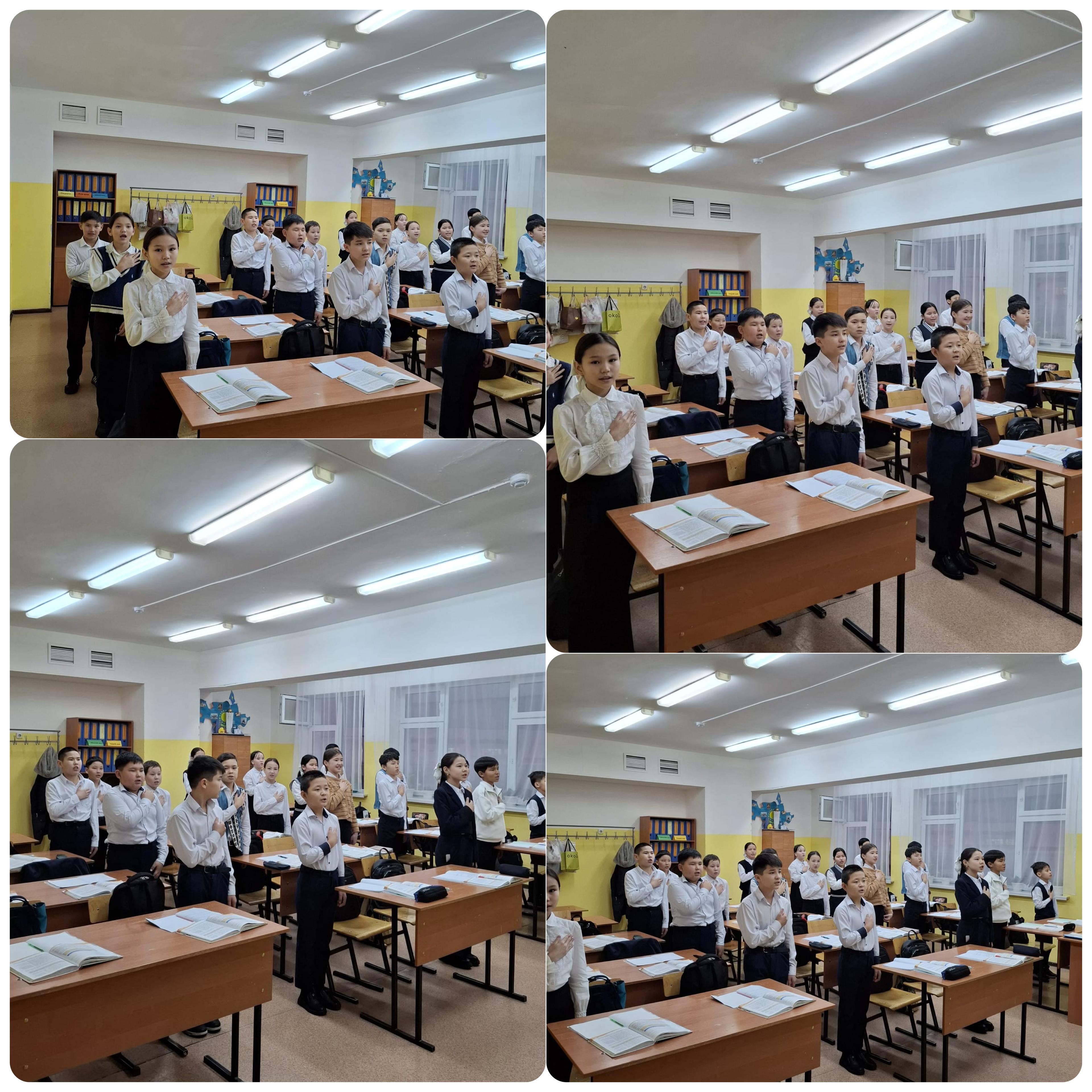 КГУ "Общеобразовательная школа №26" Управления образования города Алматы » Іс-шаралар » Алматы қаласы Алатау ауданы №26 жалпы білім беретін мектептің 6 “Д”сыныбының оқушыларына “Әнұранын орындату” Мақсаты: Оқушылардың патриоттық сезімін оятып,Отанға деген сүйіспеншілігін арттыру мақсатында күнделікті “Әнұран” орындауға тәрбиелеу.