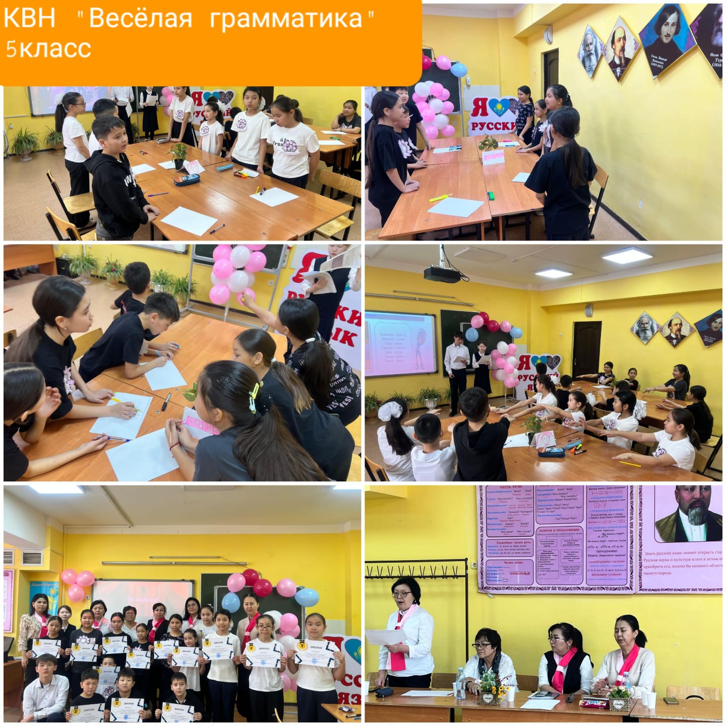 13 февраль 2025 0 1 2 3 4 5 Алматы қаласы Алатау ауданы №26 жалпы білім беретін мектепте орыс тілі мен әдебиеті пәні бірлестігінің онкүндігі аясында 5 сыныптардың арасында КВН “Весёлая грамматика” сайысы өткізілді.